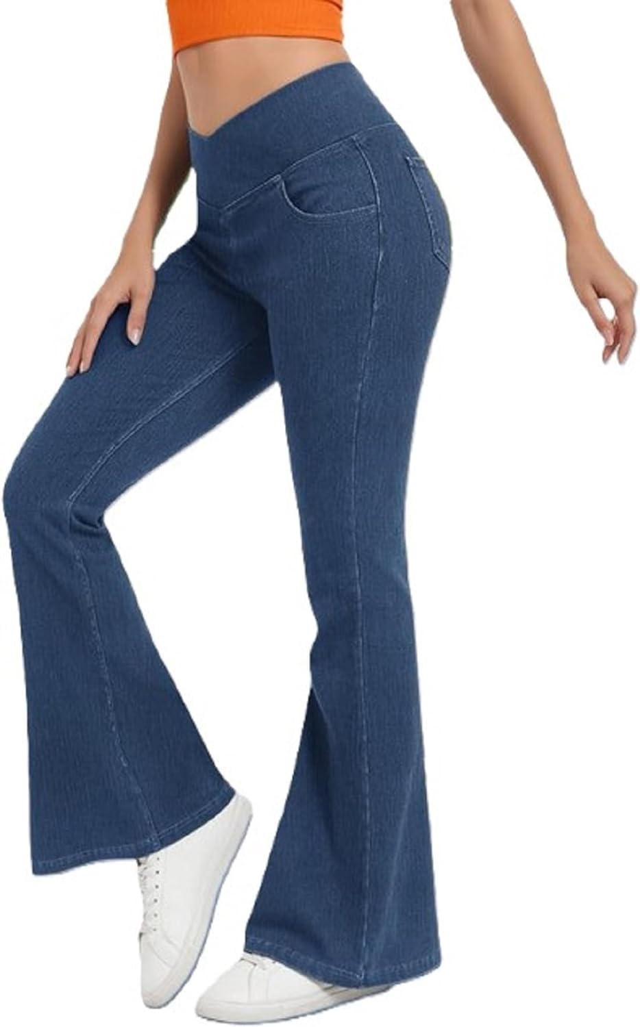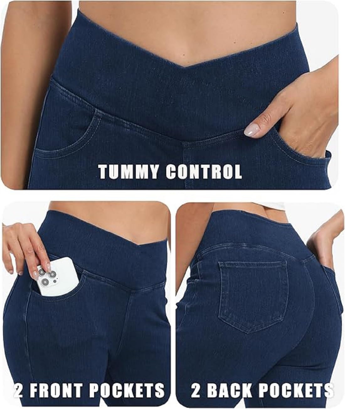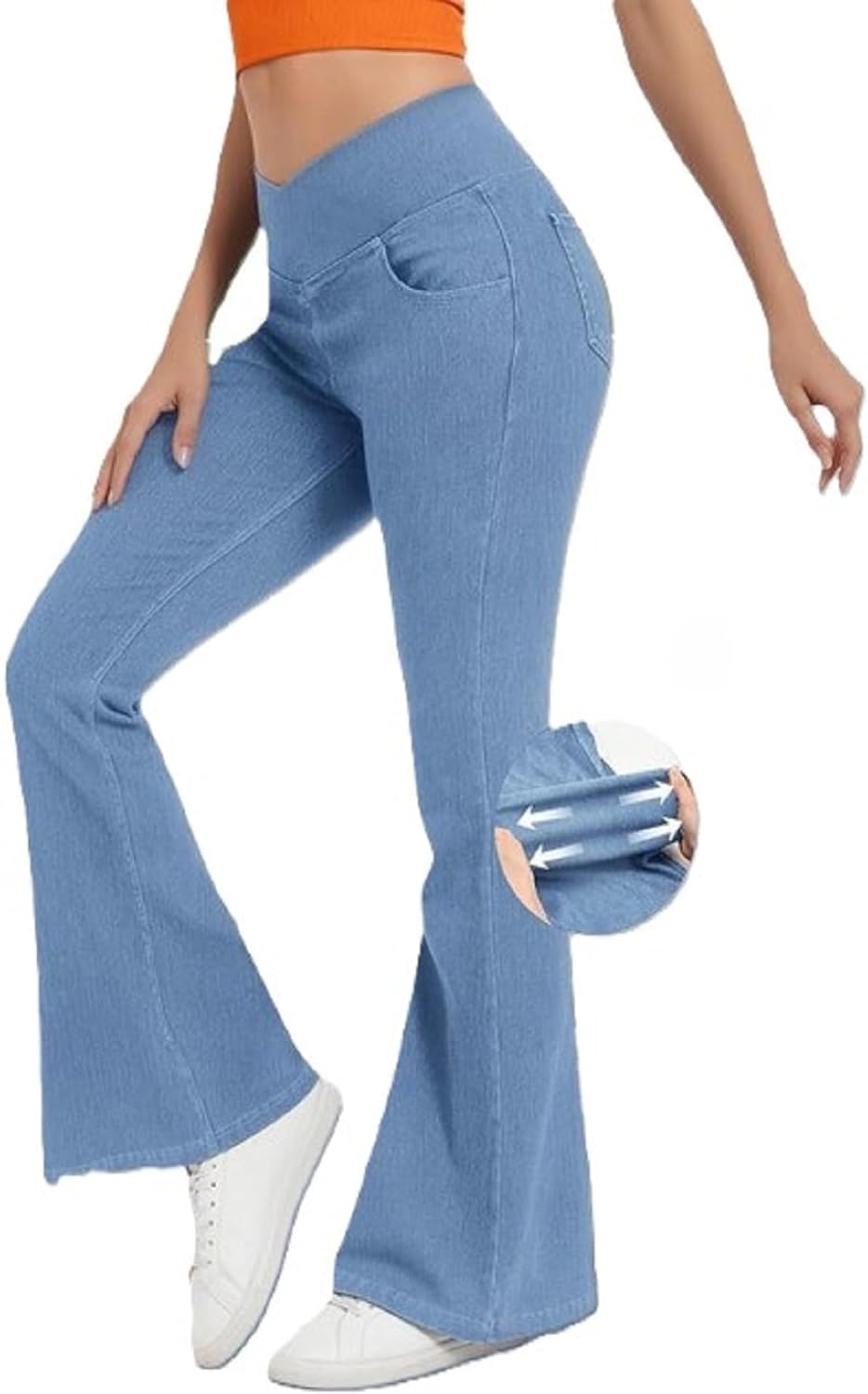 ADBUCKS Flared Jeggings for Women High Waisted Bell Bottom Jeans Trendy Stretchy Flare Jeggings with Pockets