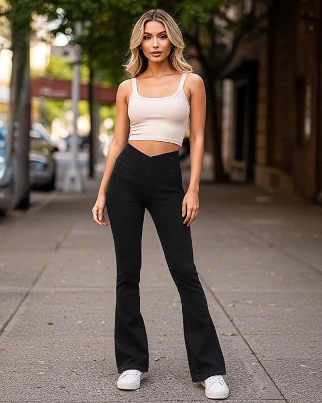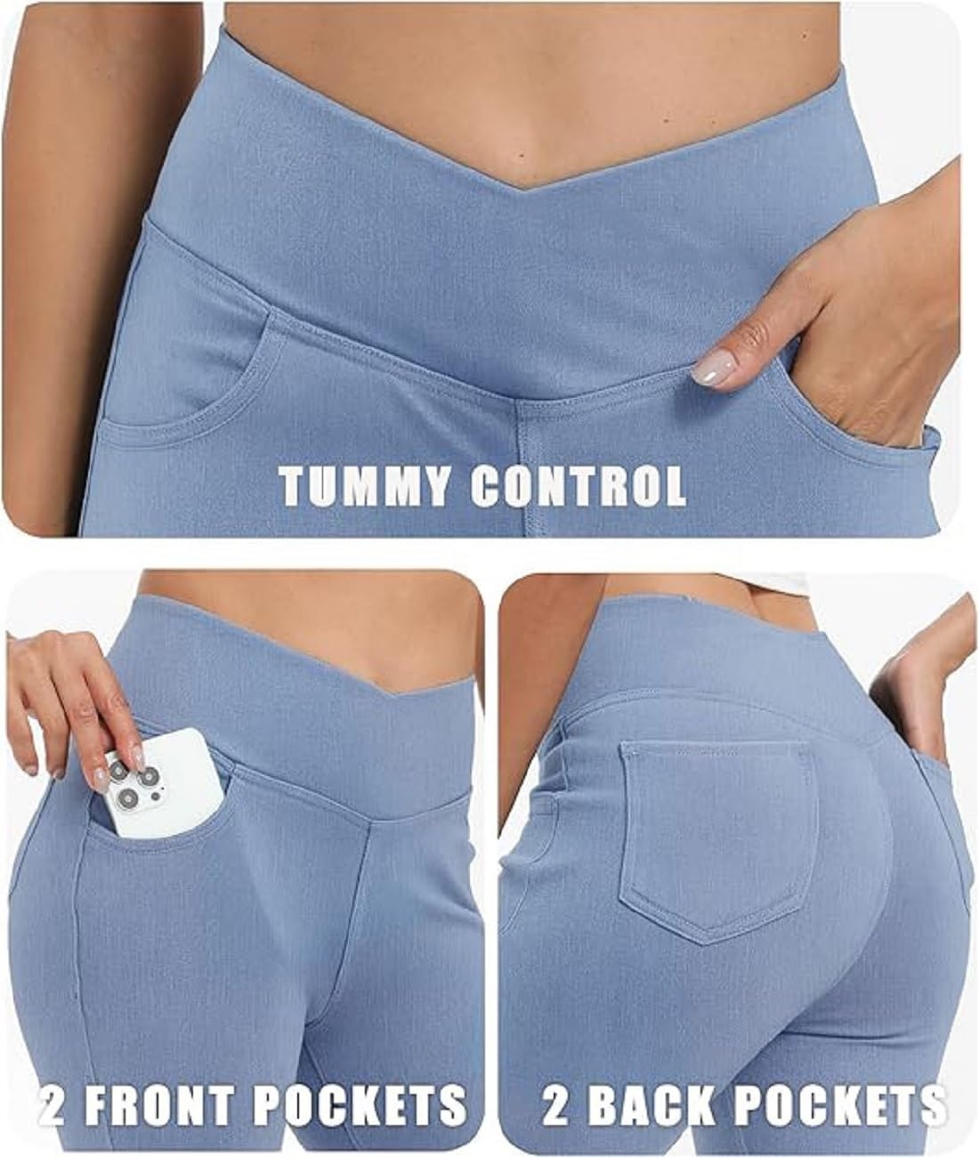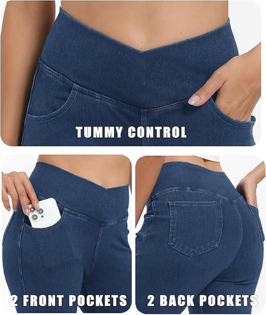 ADBUCKS Flared Jeggings for Women High Waisted Bell Bottom Jeans Trendy Stretchy Flare Jeggings with Pockets
