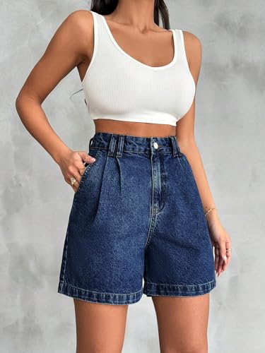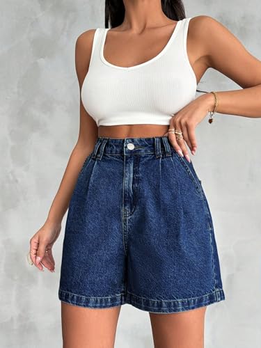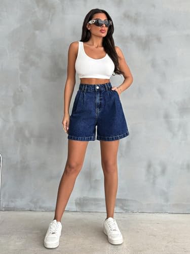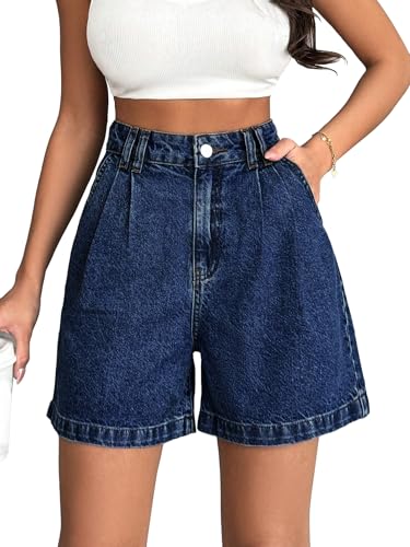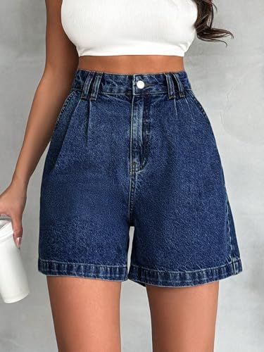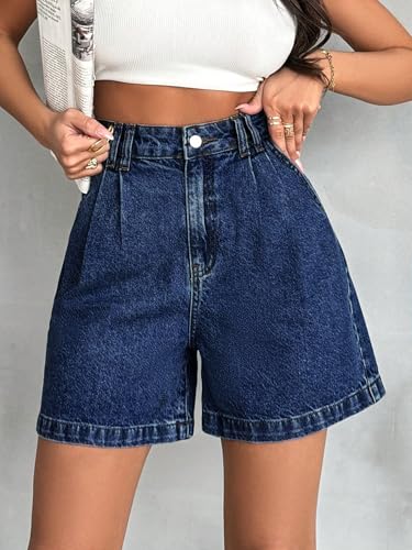Buy Shasmi Girl’s & Women’s Dark Blie High Waisted Denim Shorts, 2025 Fashion Vintage Wash, Straight Cut (Short 234 Dark Blue-M) at Amazon.in