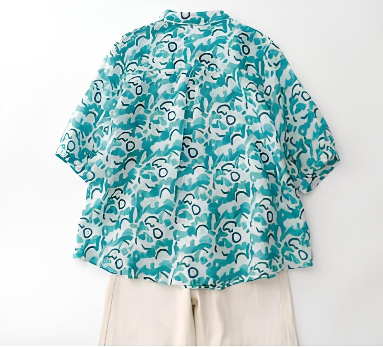Be the first to review “Gufrina Women’s Abstract Printed Button Down Shirt with Mandarin Collar and Above Elbow Sleeve Relaxed Fit Top”