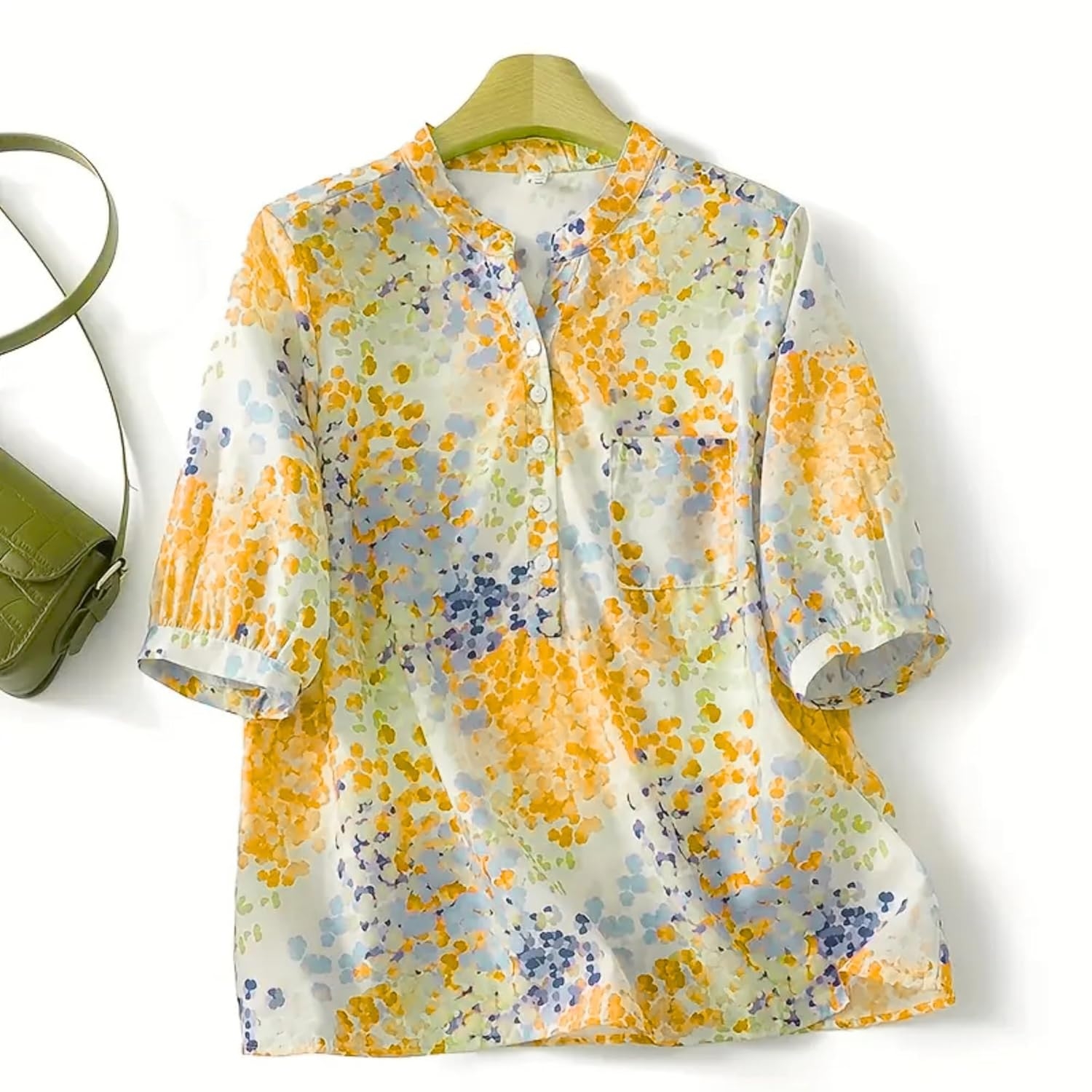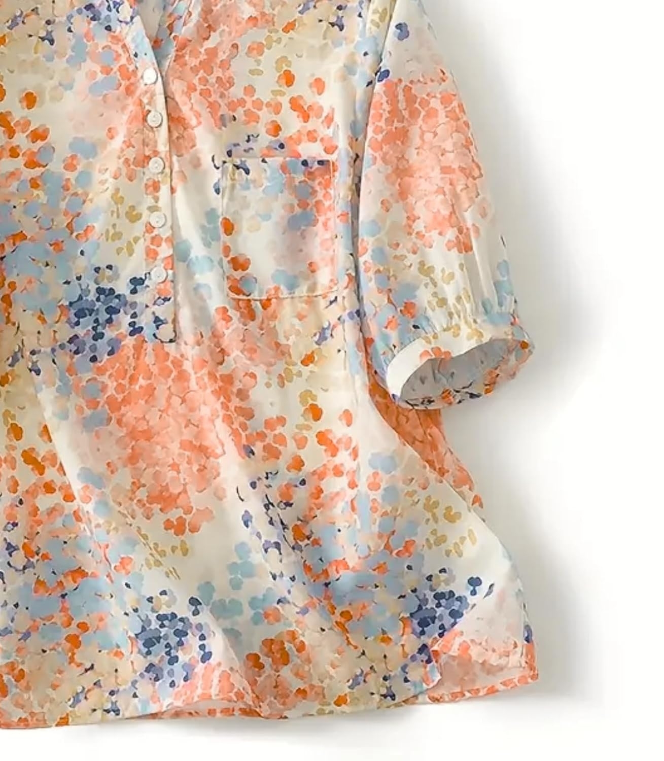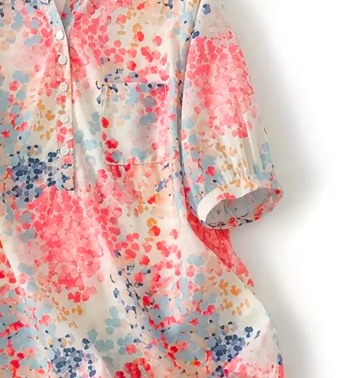Imagine a shirt that feels like your comfort zone and your glow-up moment rolled into one. This isn’t just another floral — it’s art you can wear. The print is inspired by hand-painted splashes, giving it that unique, gallery-wall vibe that no mass-produced pattern can match. The relaxed fit means you’re never fighting with your clothes — it’s breathable, flowy, and moves with you whether you’re at brunch, on a weekend trip, or working from your favorite café. The airy cotton blend is soft on your skin, light enough for summer, but not so thin that it can’t handle a breezy autumn day. Basically… this shirt’s your year-round partner in crime.