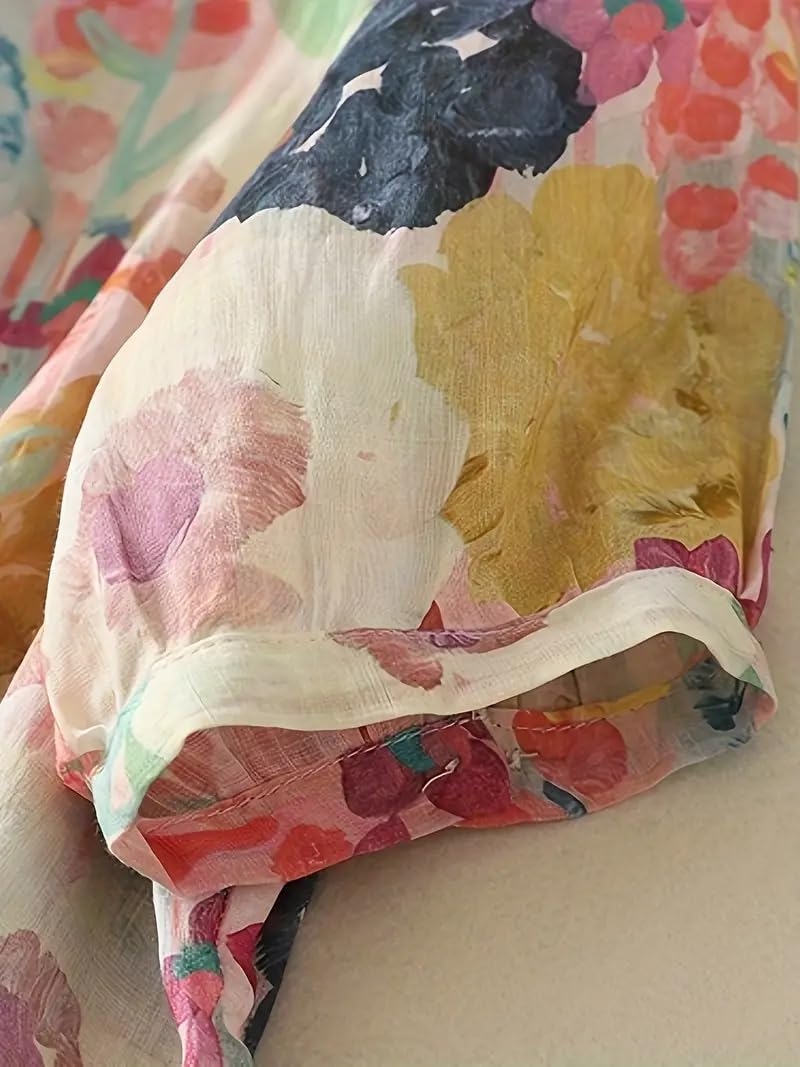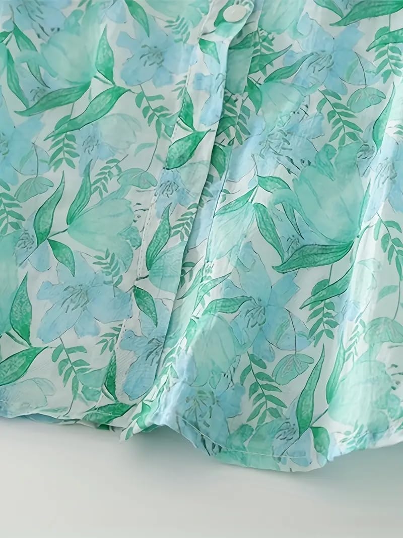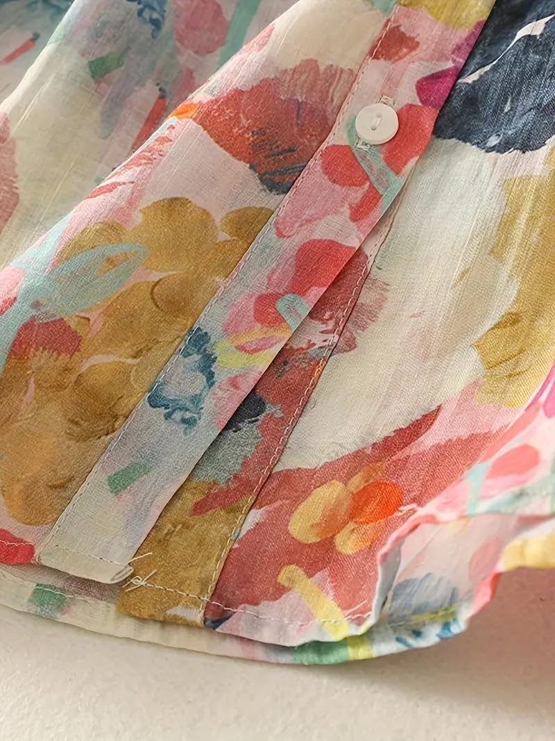 Gufrina Women’s Casual Button-Down Shirt with Multicolor Floral Print & Half Sleeves, Collar Neck