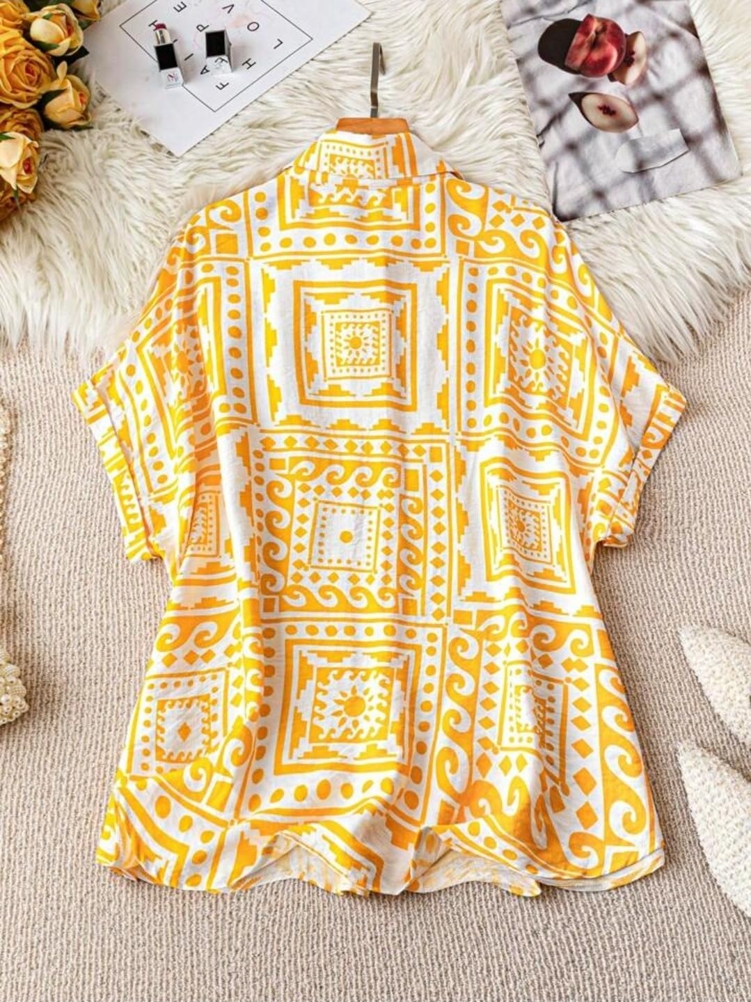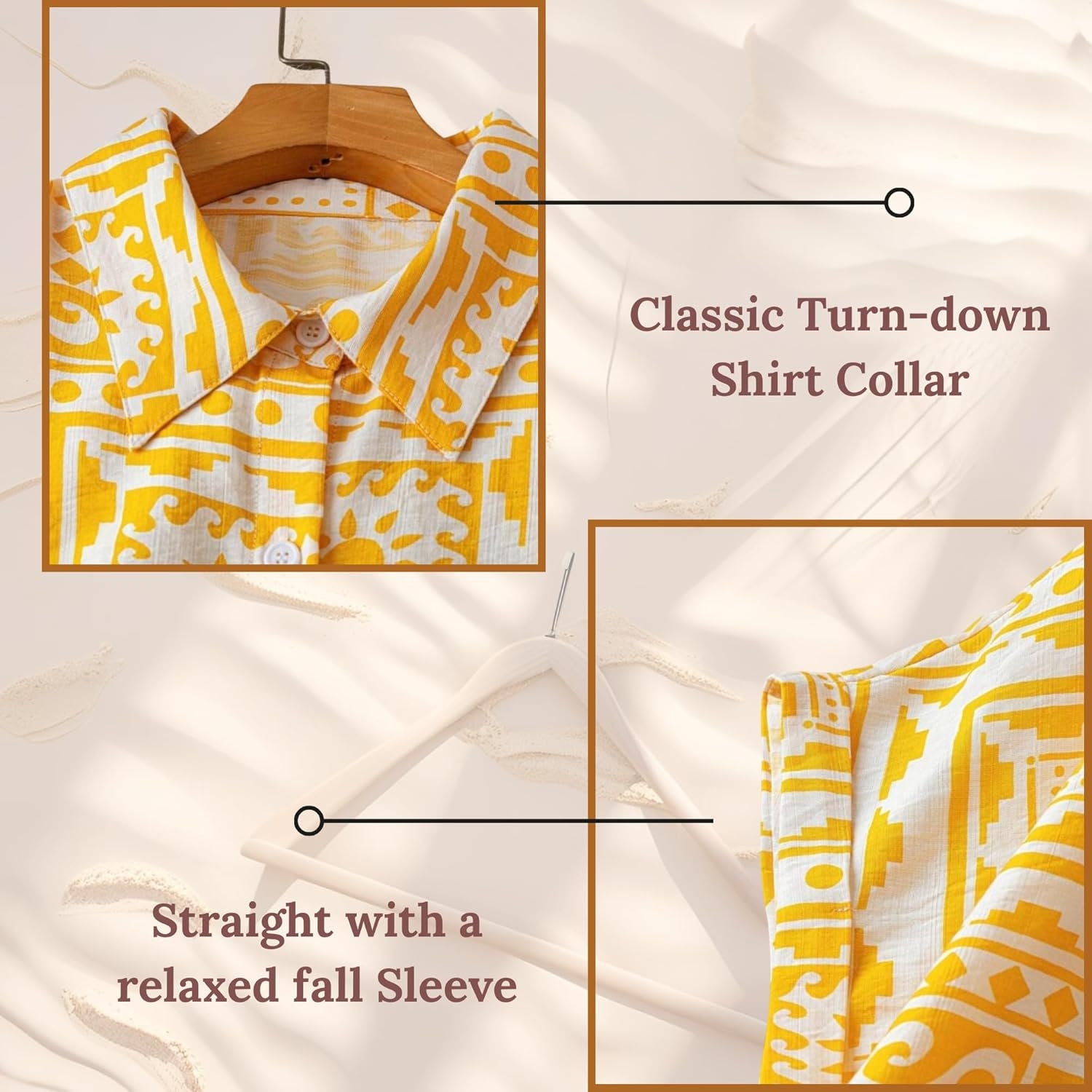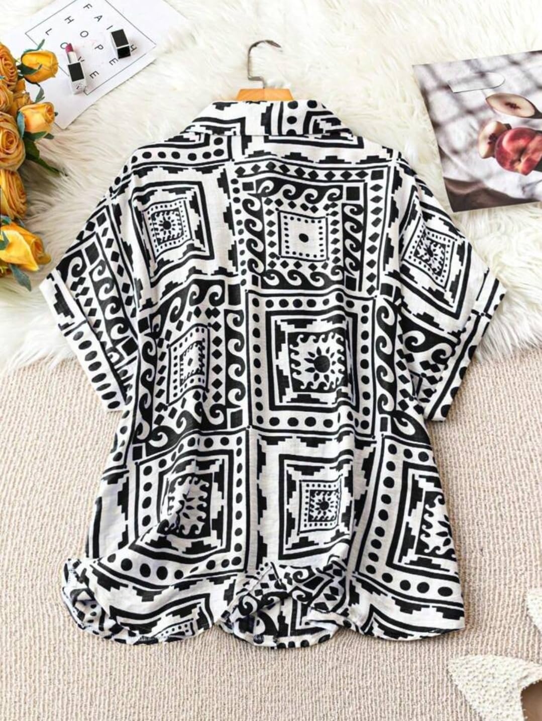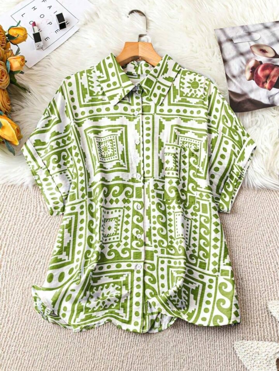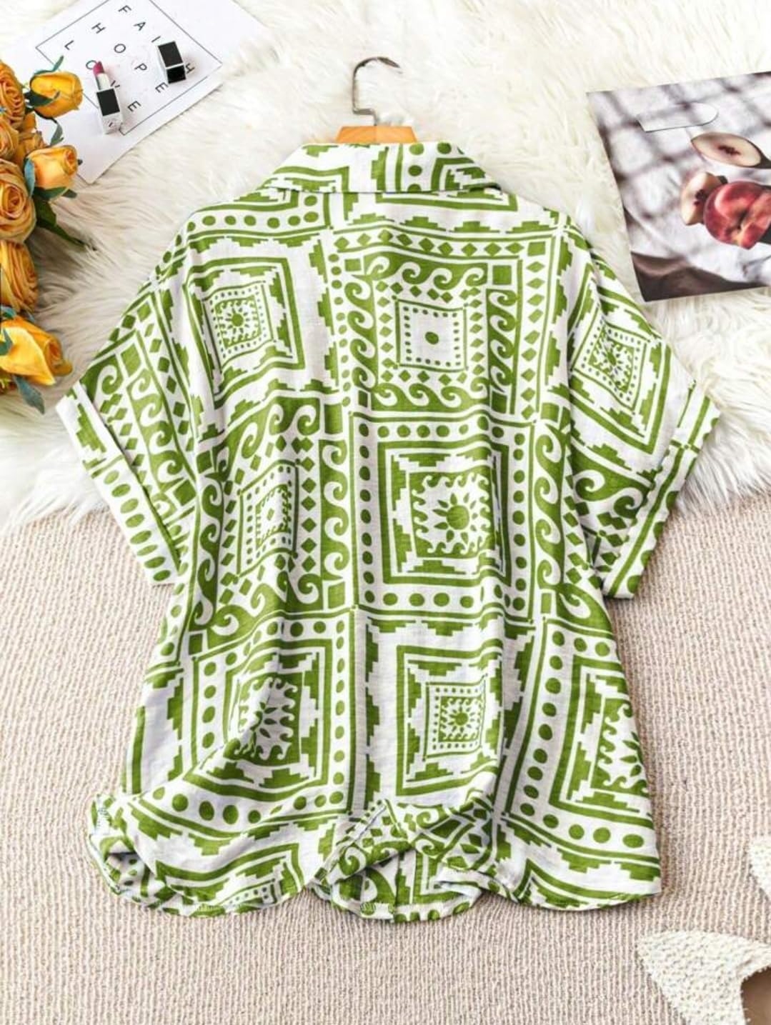 Be the first to review “Gufrina Women’s Polyester Shirt with Pocket Half Raglan Sleeves Spread Collar Neck Geometric Printed Relaxed Fit and Standard Length”