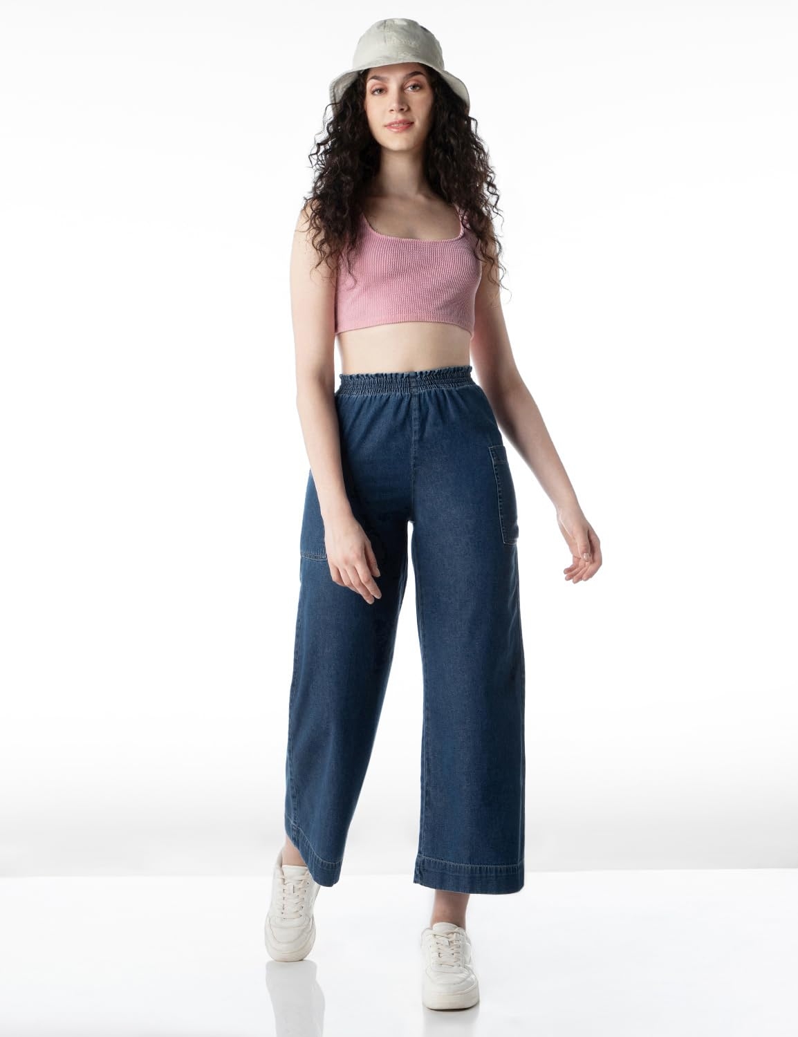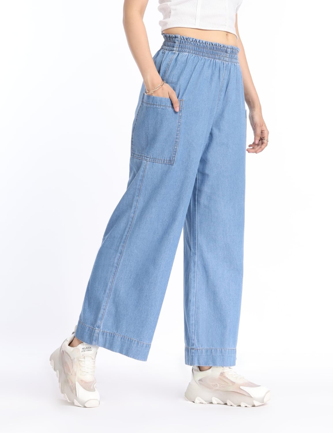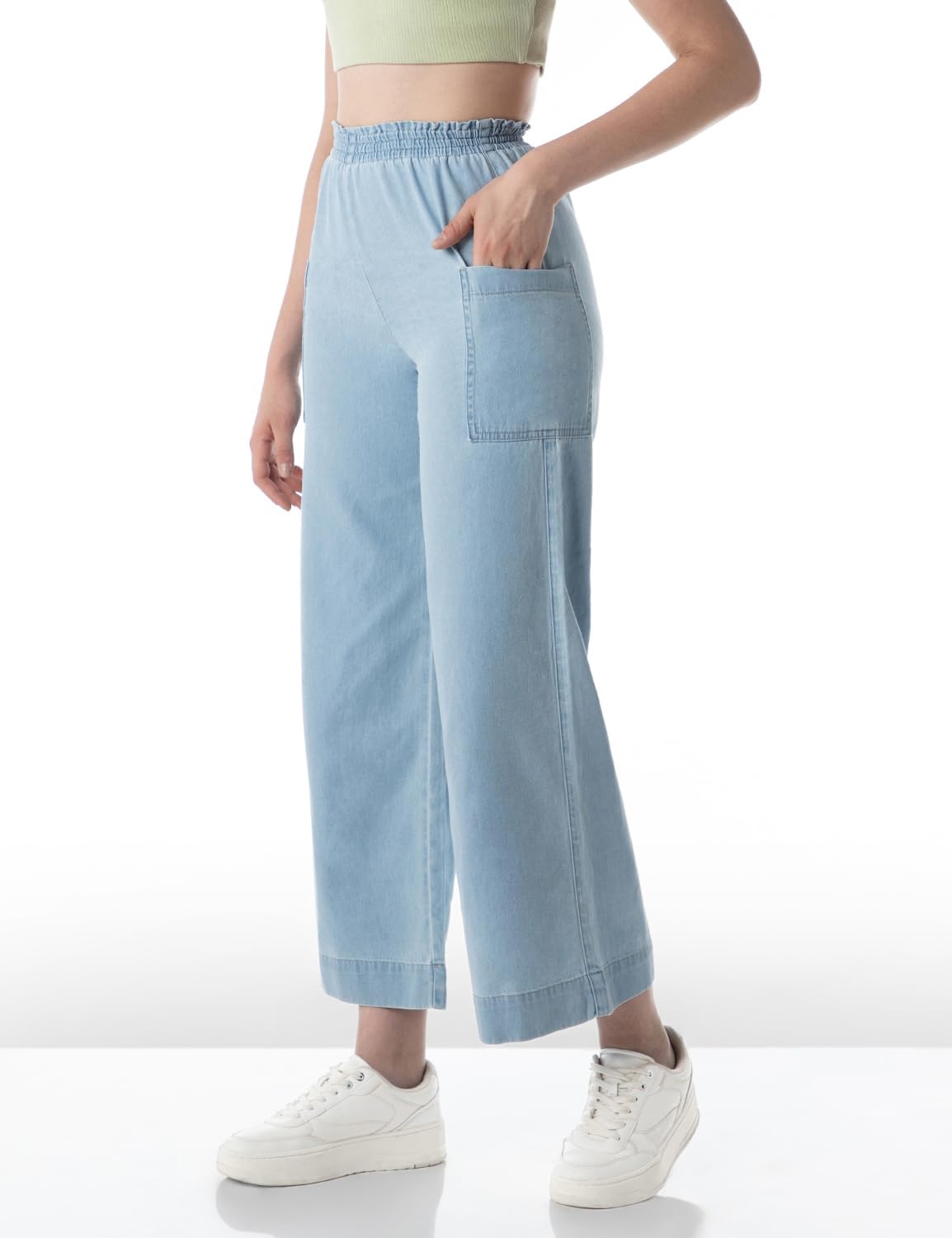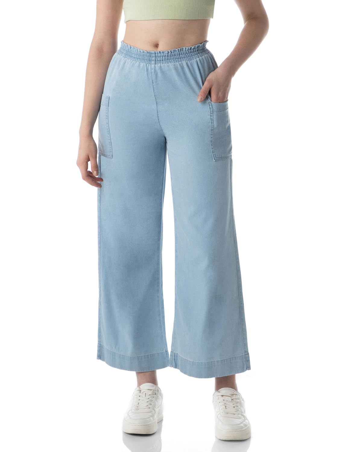 INKD Women’s Wide Leg Jeans – High-Rise | 100% Cotton| Enzyme Wash | Elasticated Waistband | Jeans for Women (Available in Plus Sizes)