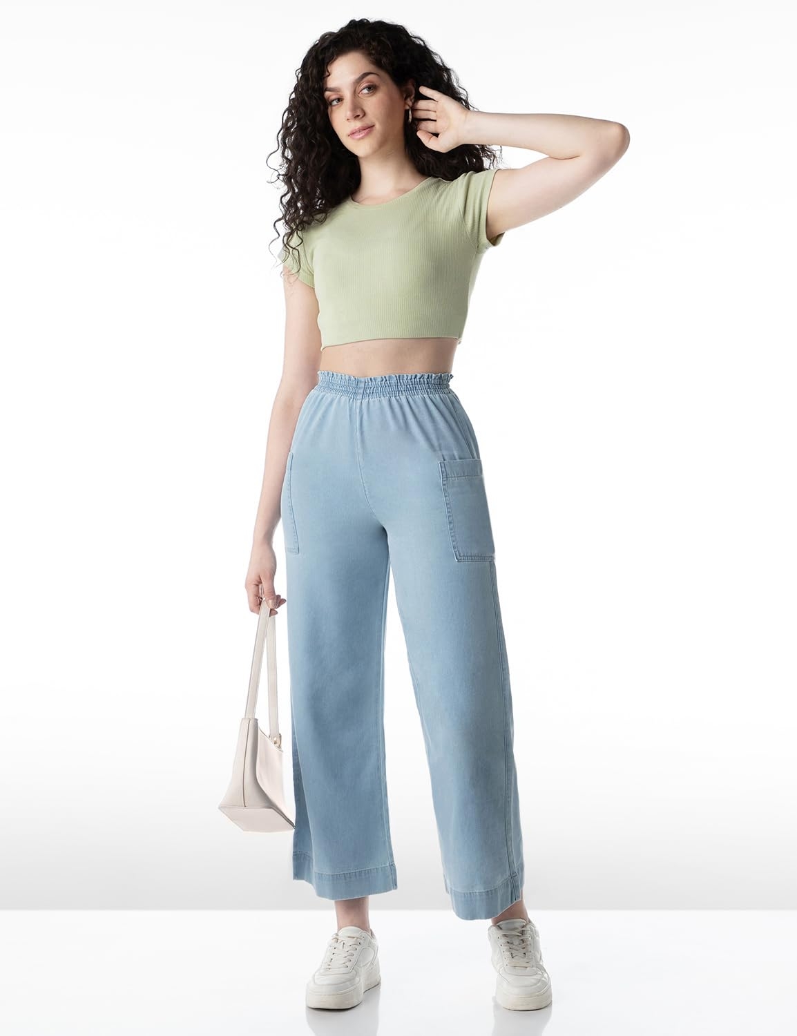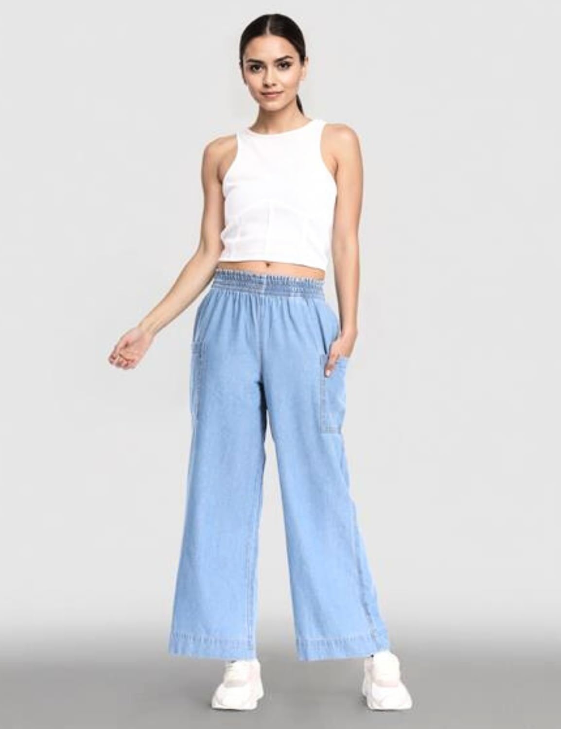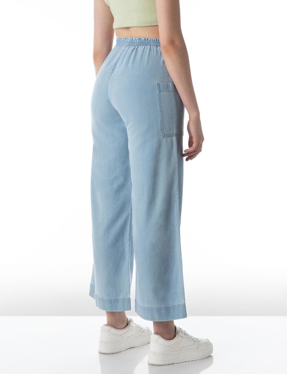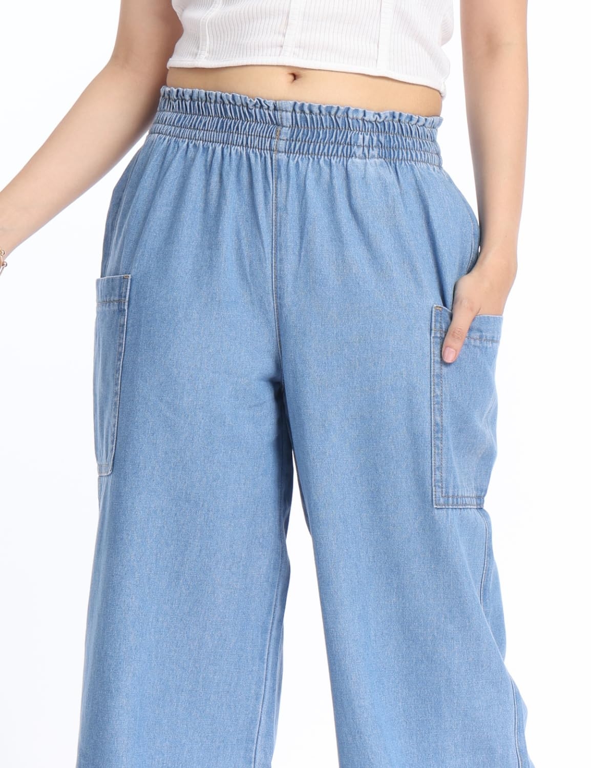INKD Women’s Wide Leg Jeans – High-Rise | 100% Cotton| Enzyme Wash | Elasticated Waistband | Jeans for Women (Available in Plus Sizes)