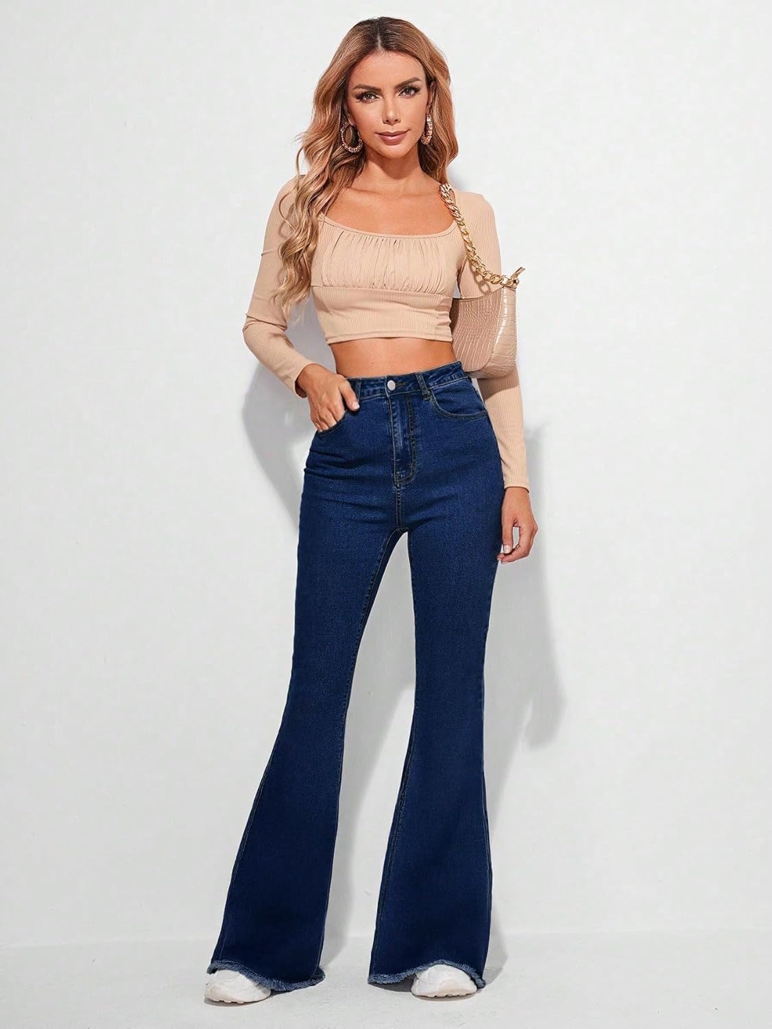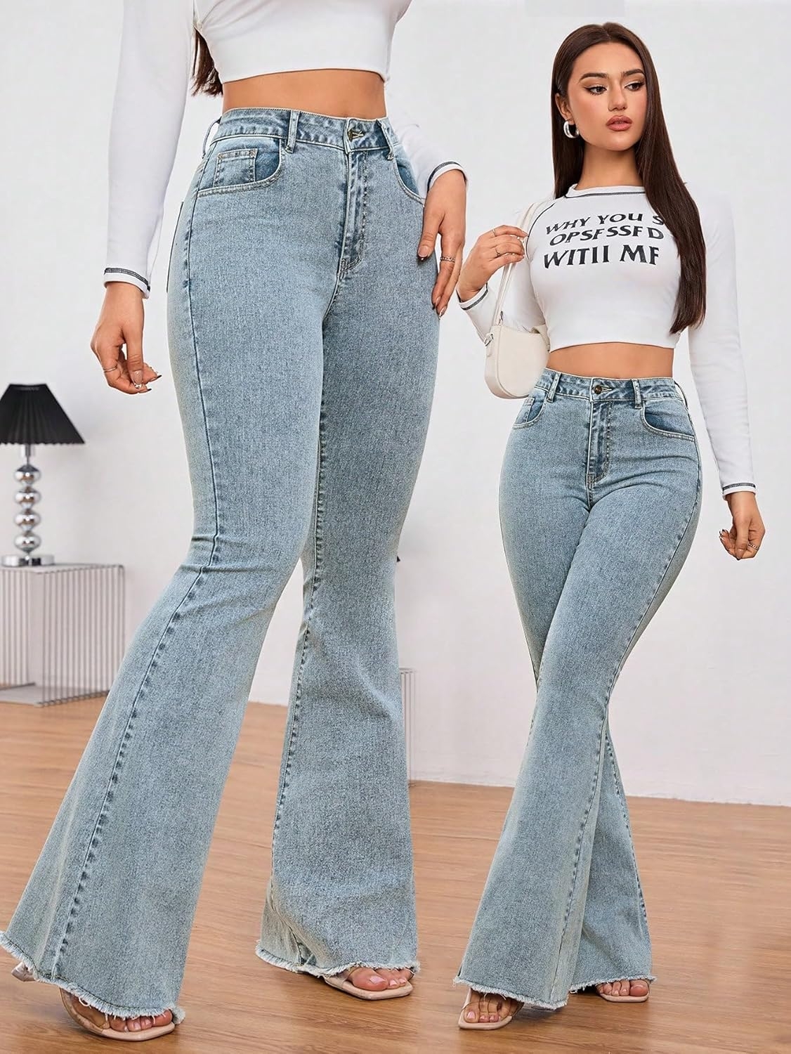 KOTTY Women’s High Waist Flared Fit Stretchable Denim Jeans for Casual