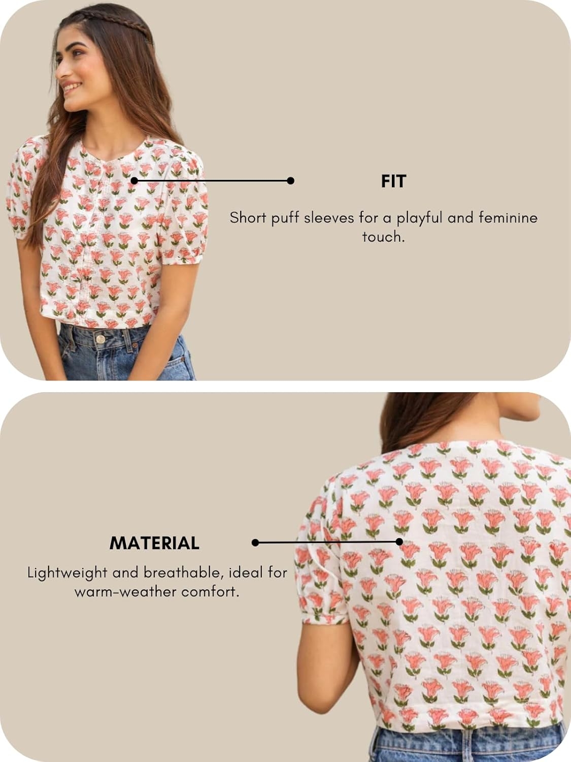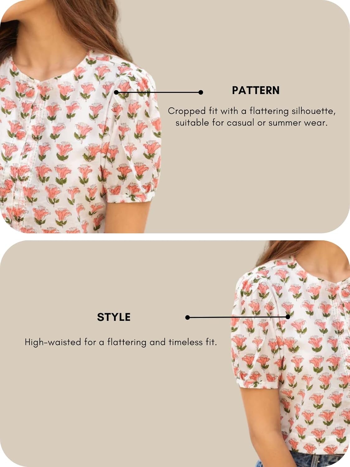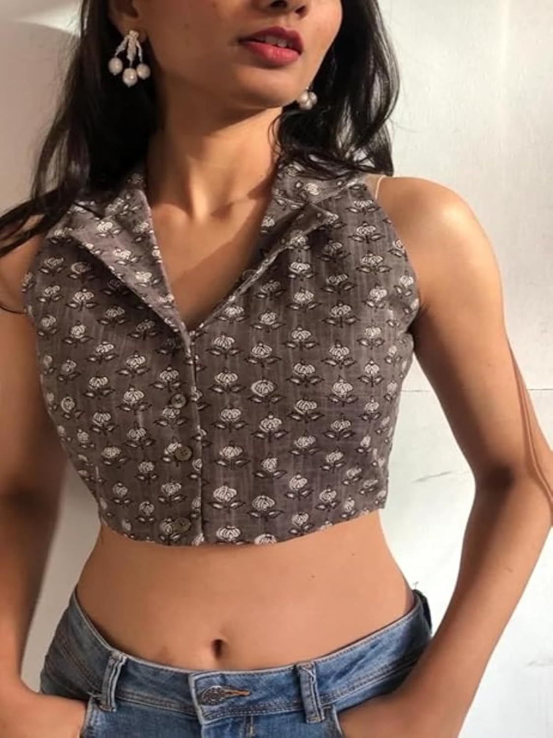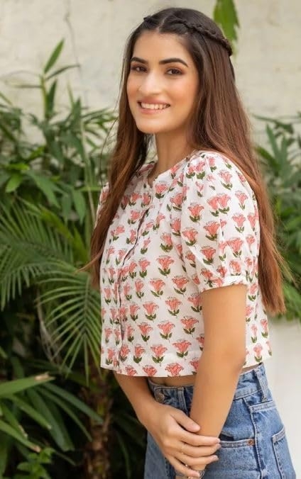 I am in love with this cute crop top. I also use this as blouse with my sarees. Perfect to wear so comfortable and stylish. It really looks good. Fabric is soft and breathable. It’s cotton and beautiful prints and stitched so perfectly. True to size. I just love it.