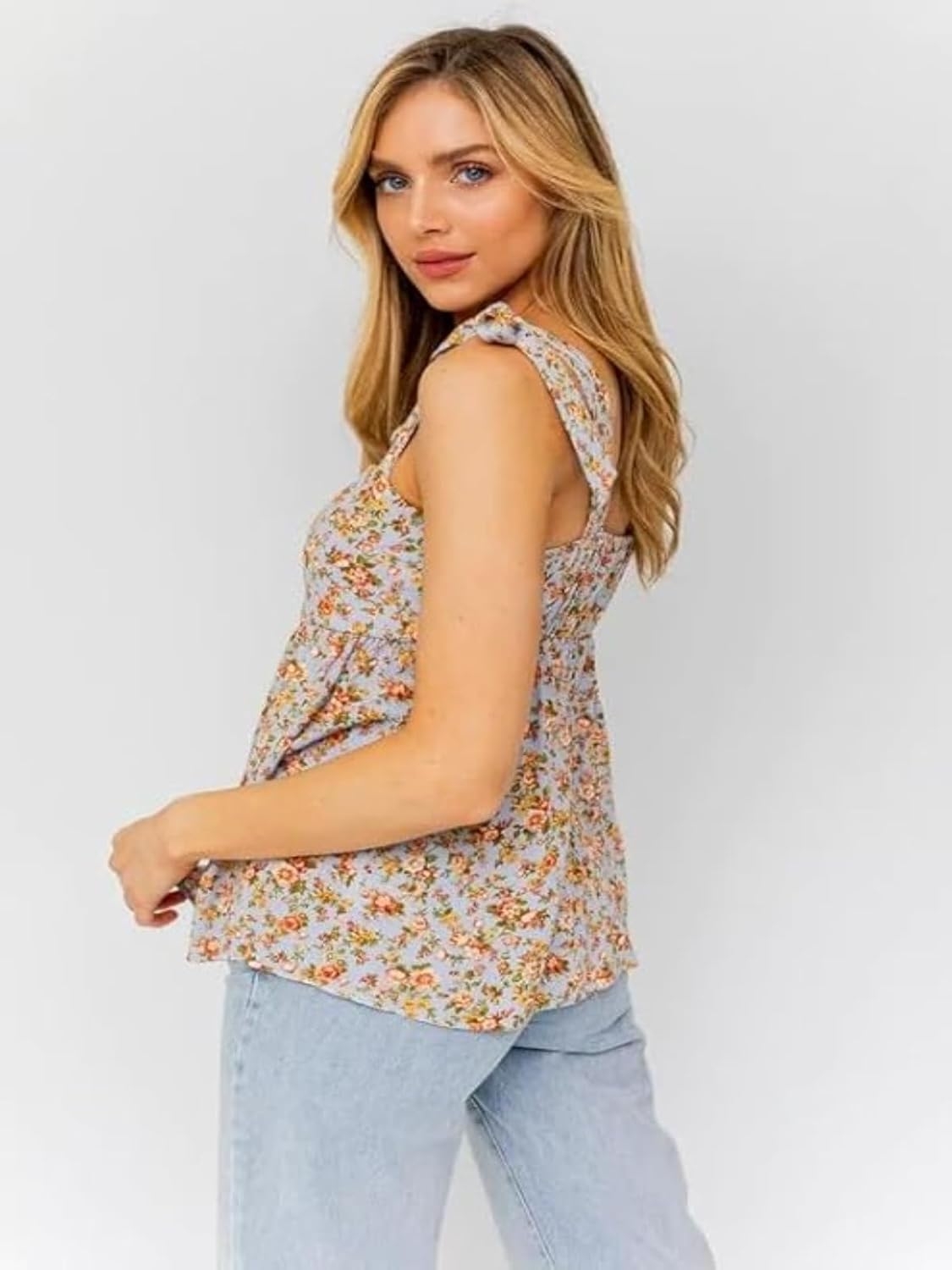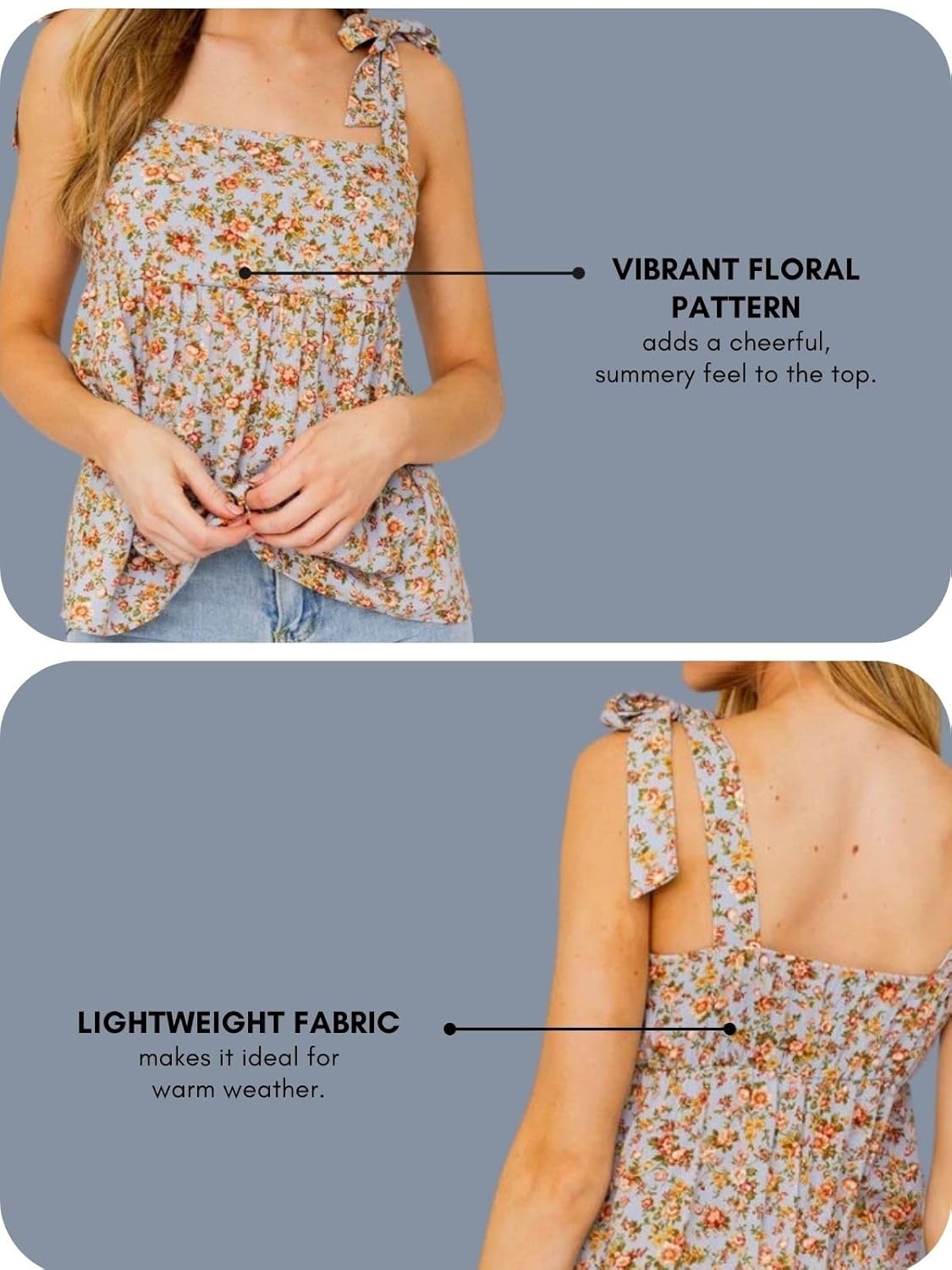 This blue sleeveless top is absolutely adorable! The fabric is soft and breathable, perfect for summer Great fit and quality.