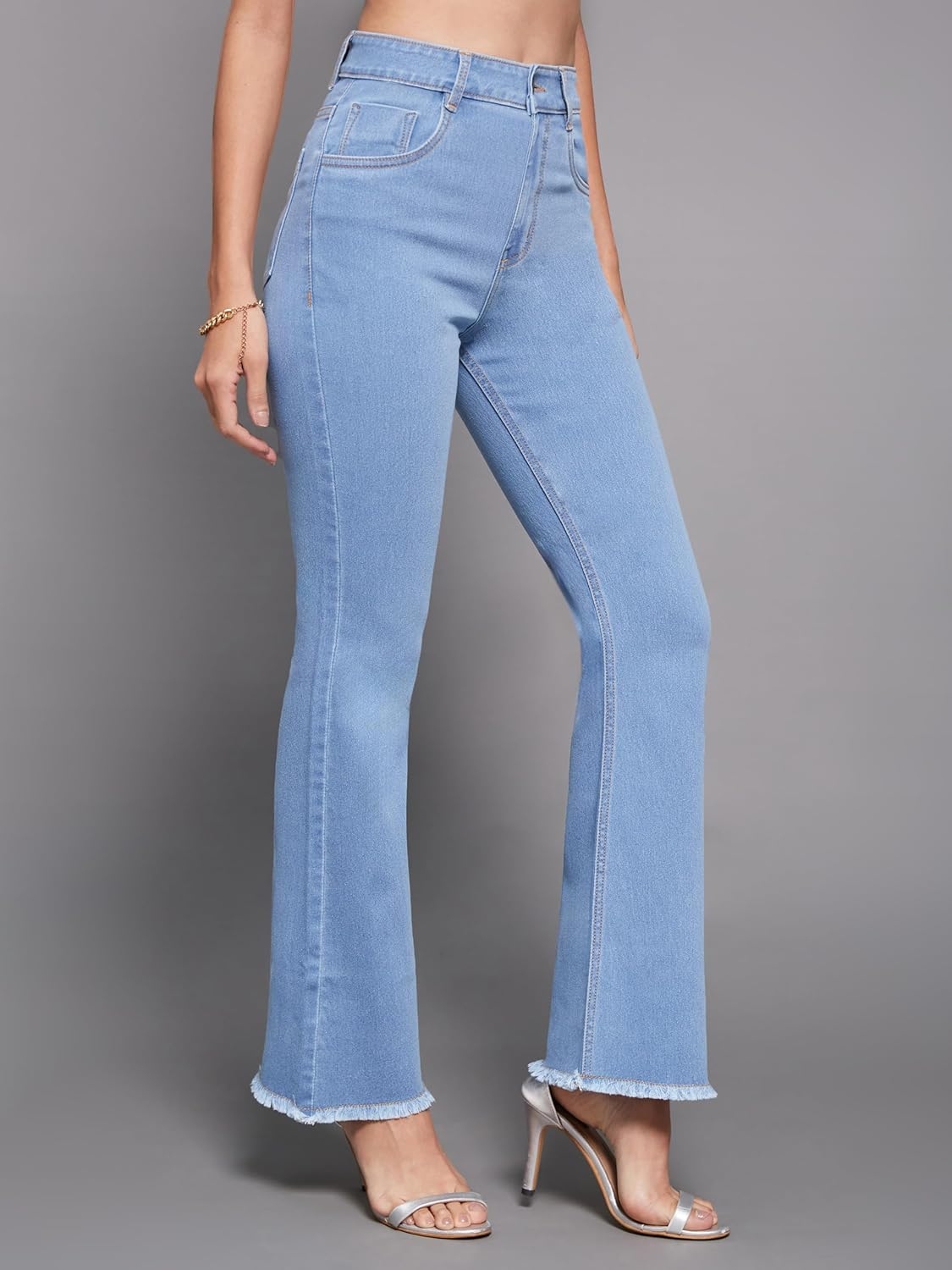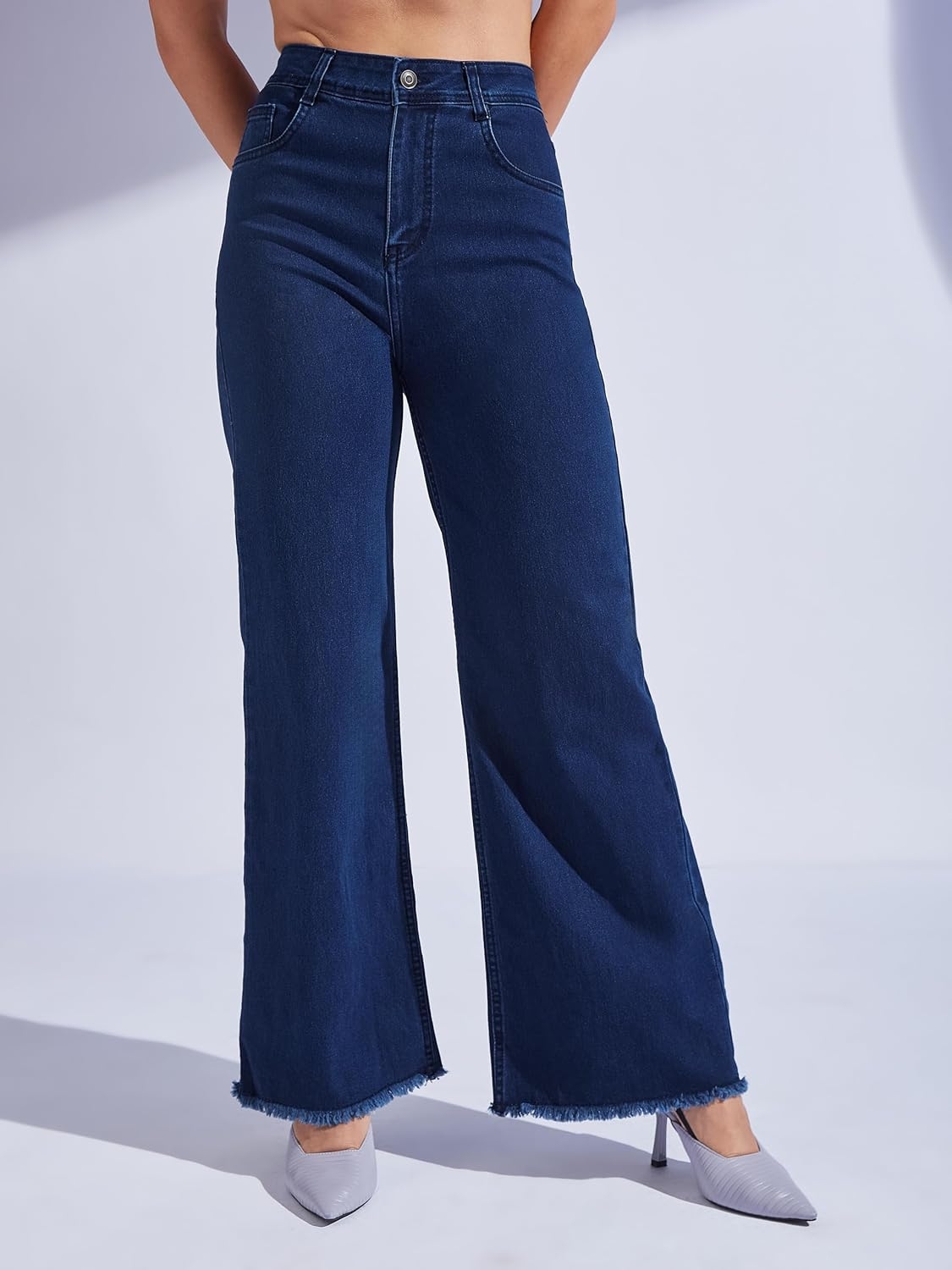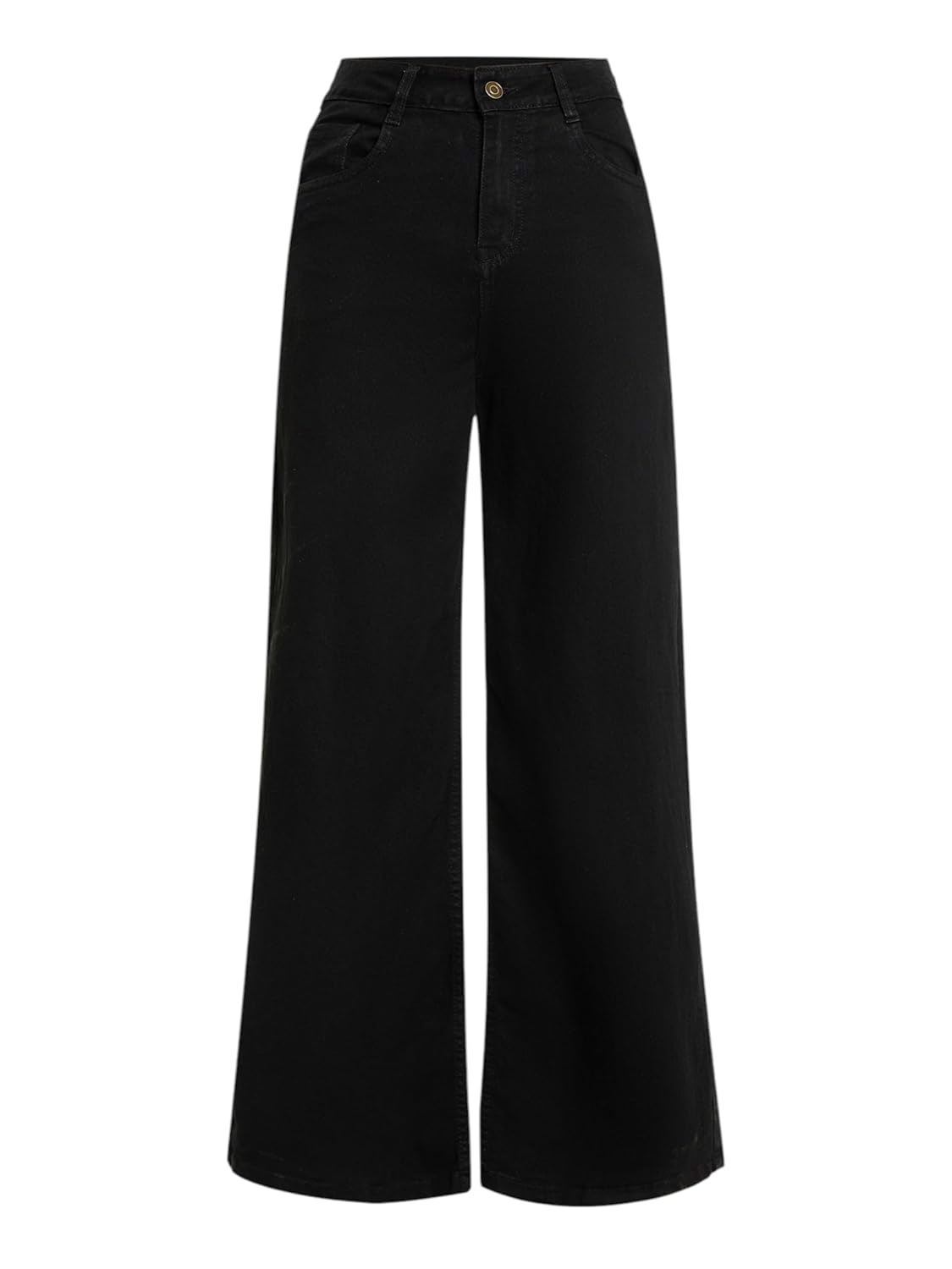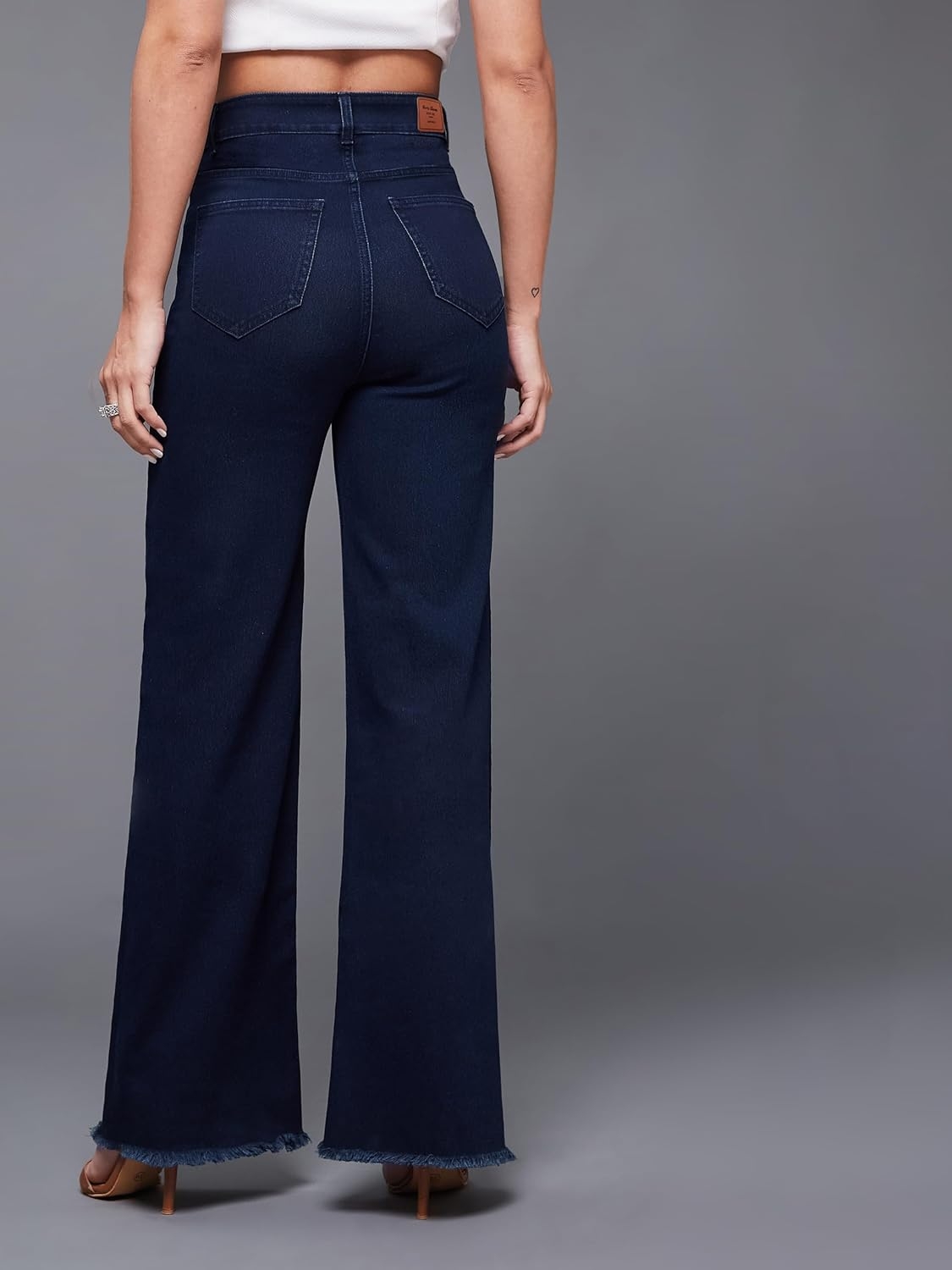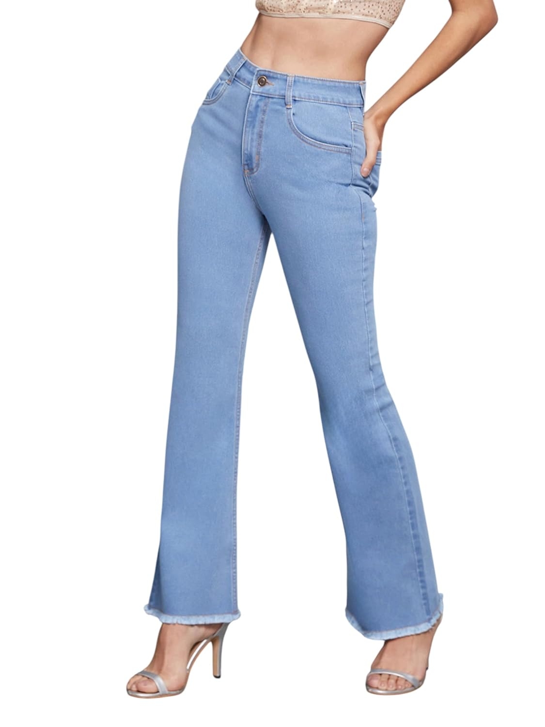 • Style: Flared | Belt: NA | Closure: Button and Zip Fly | Length: Regular | Pockets: 1 Coin, 2 Patch & 2 Side Pocket | Fit: Wide leg | Stretch: No | Rise: High Rise