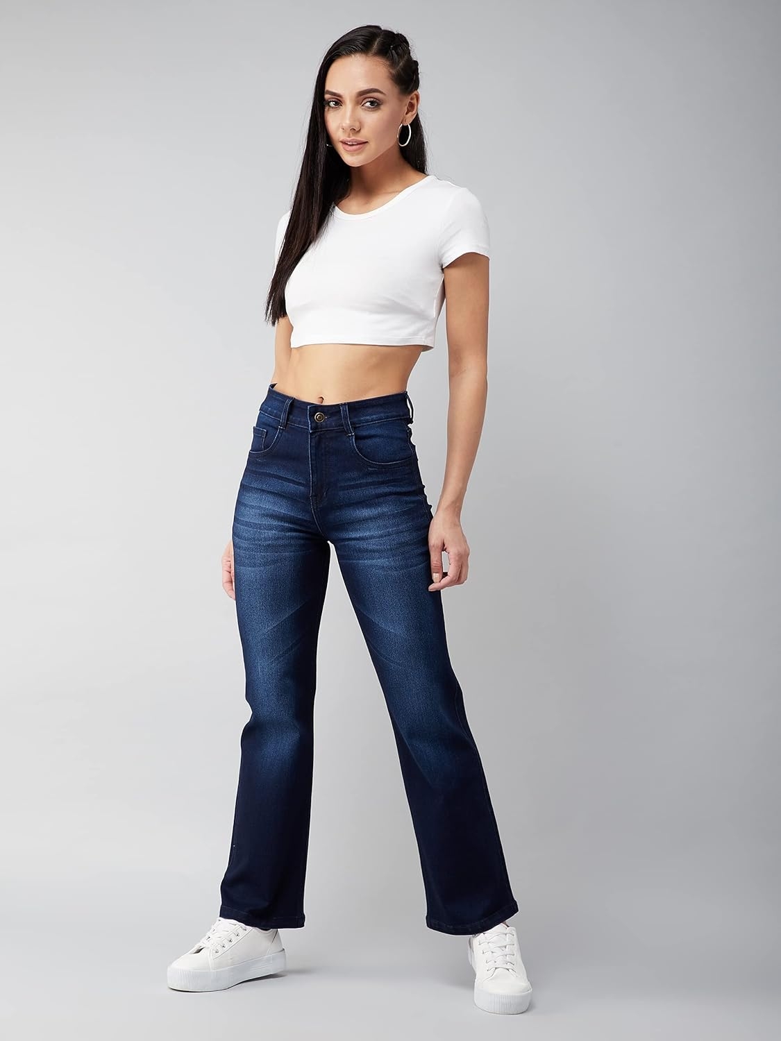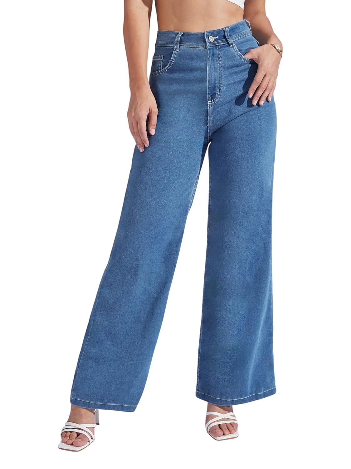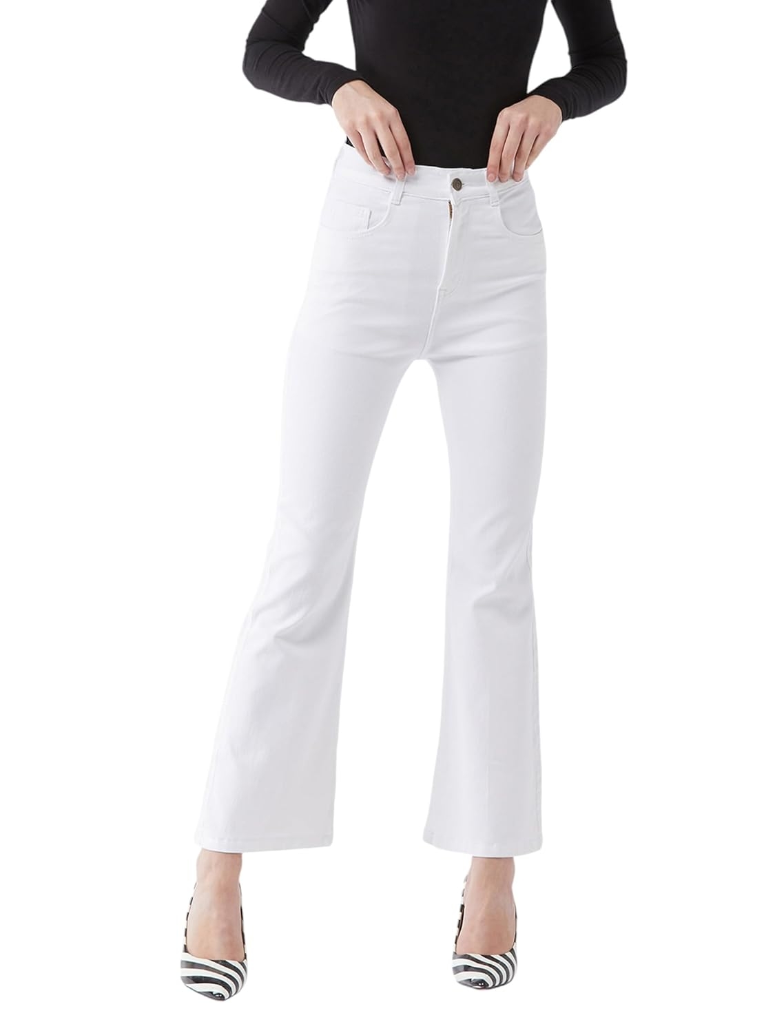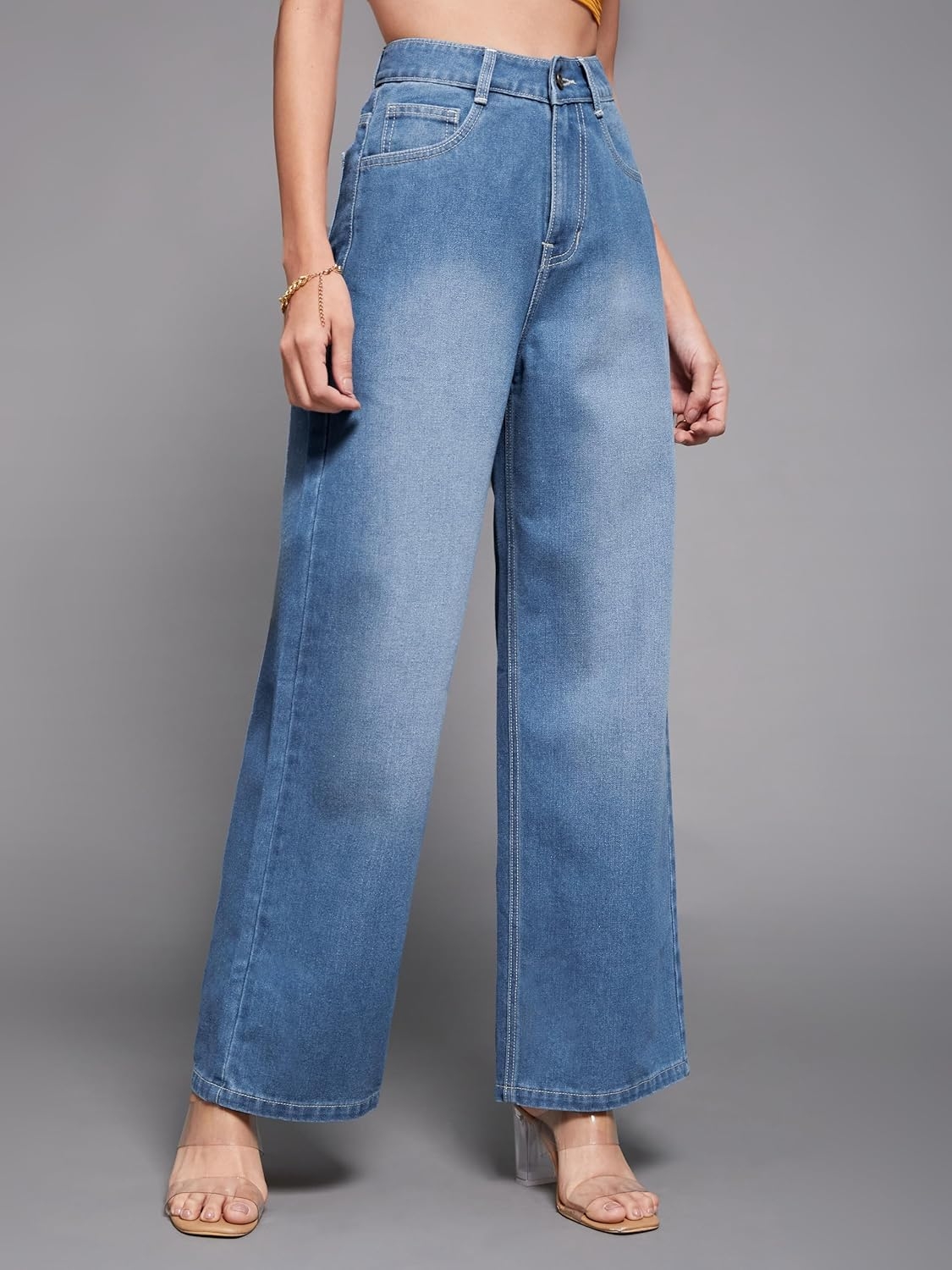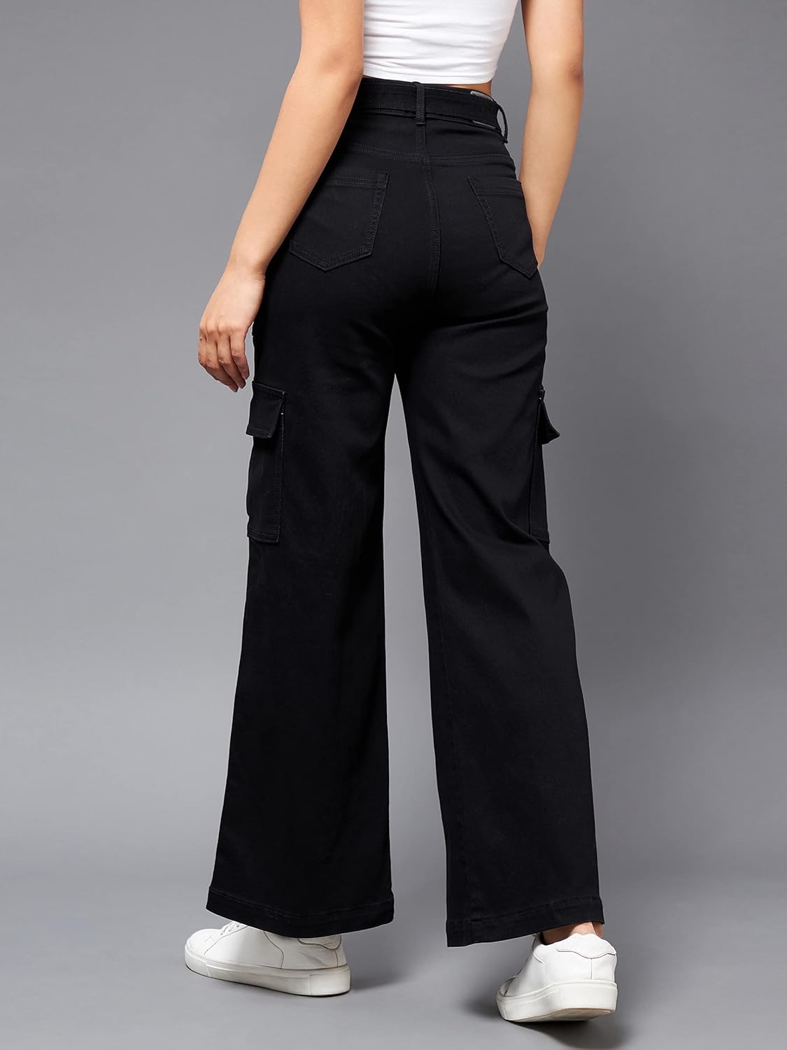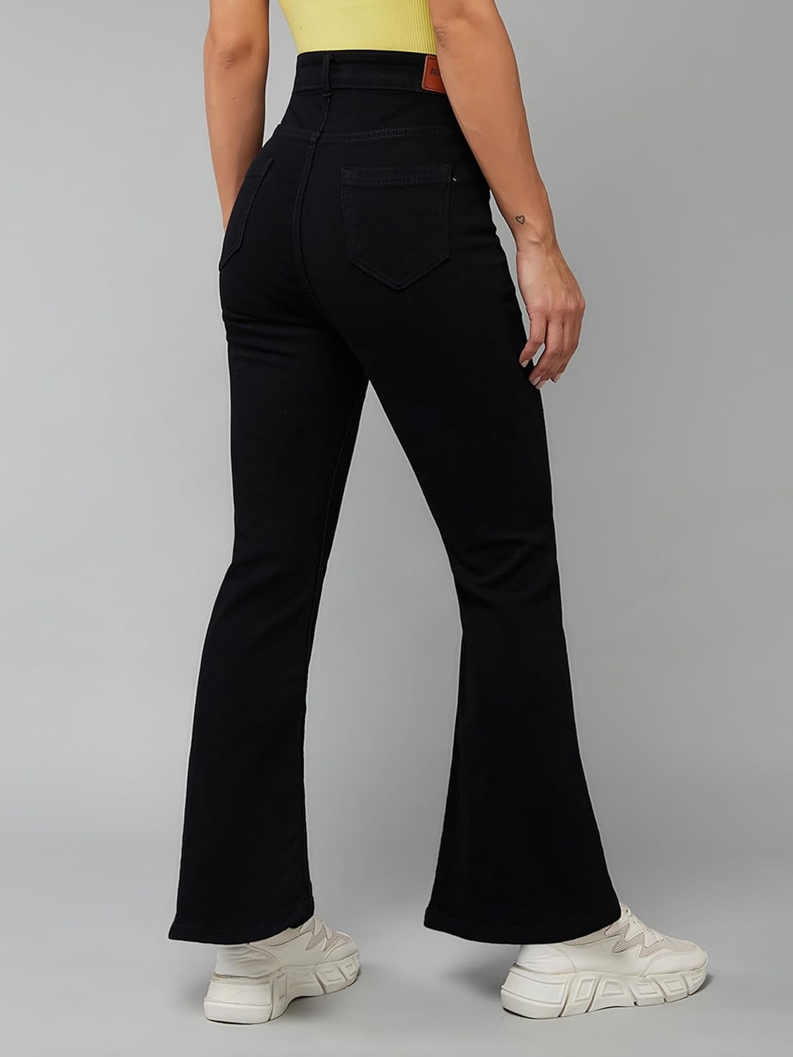 • Style: Flared | Belt: NA | Closure: Button and Zip Fly | Length: Regular | Pockets: 1 Coin, 2 Patch & 2 Side Pocket | Fit: Wide leg | Stretch: No | Rise: High Rise