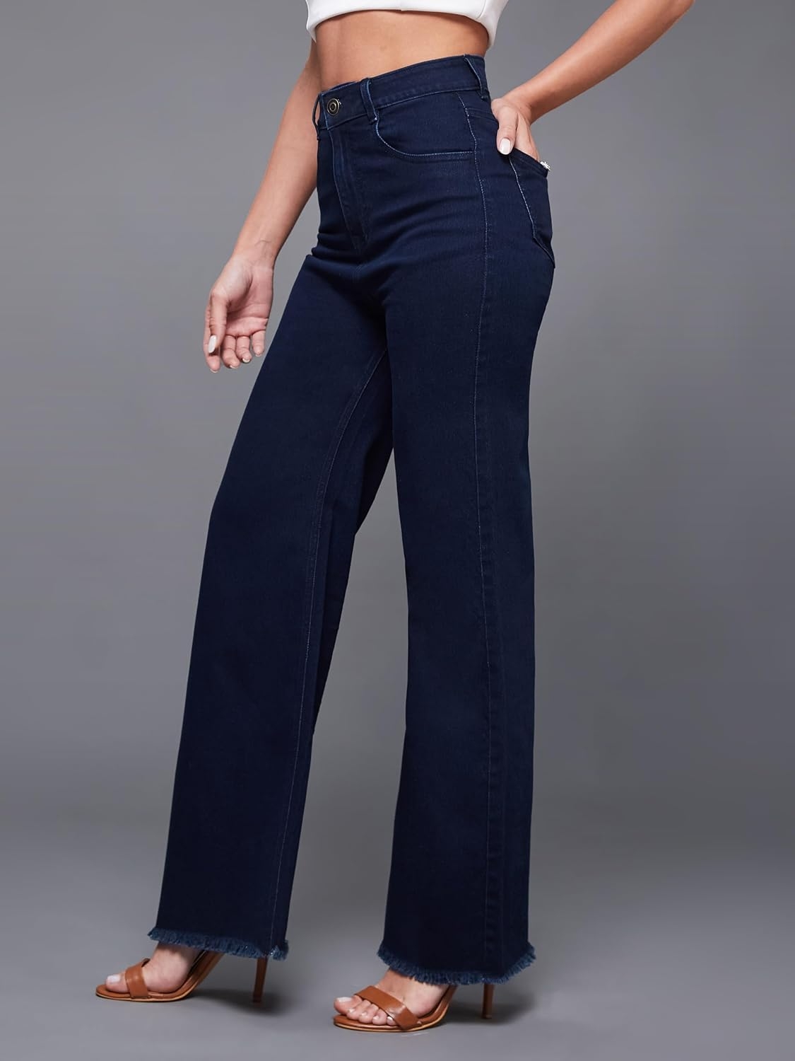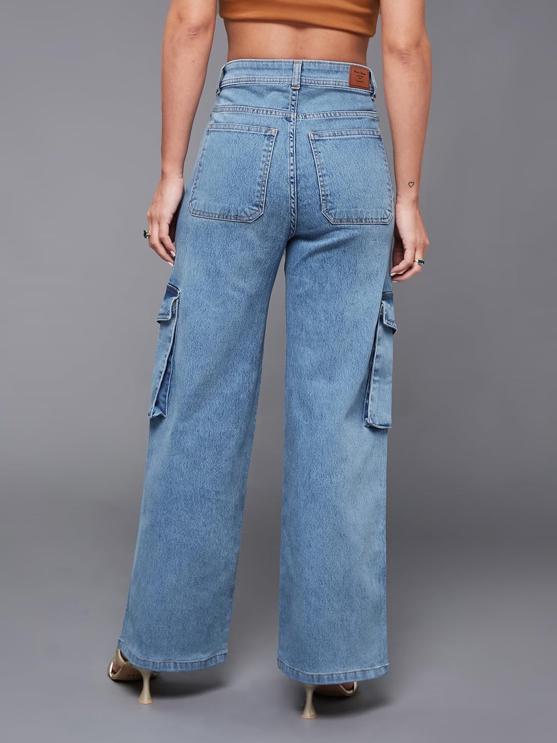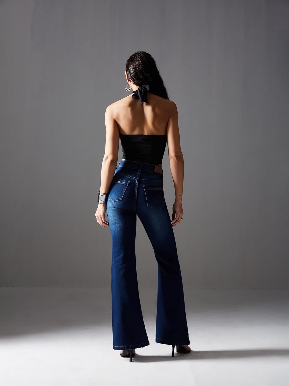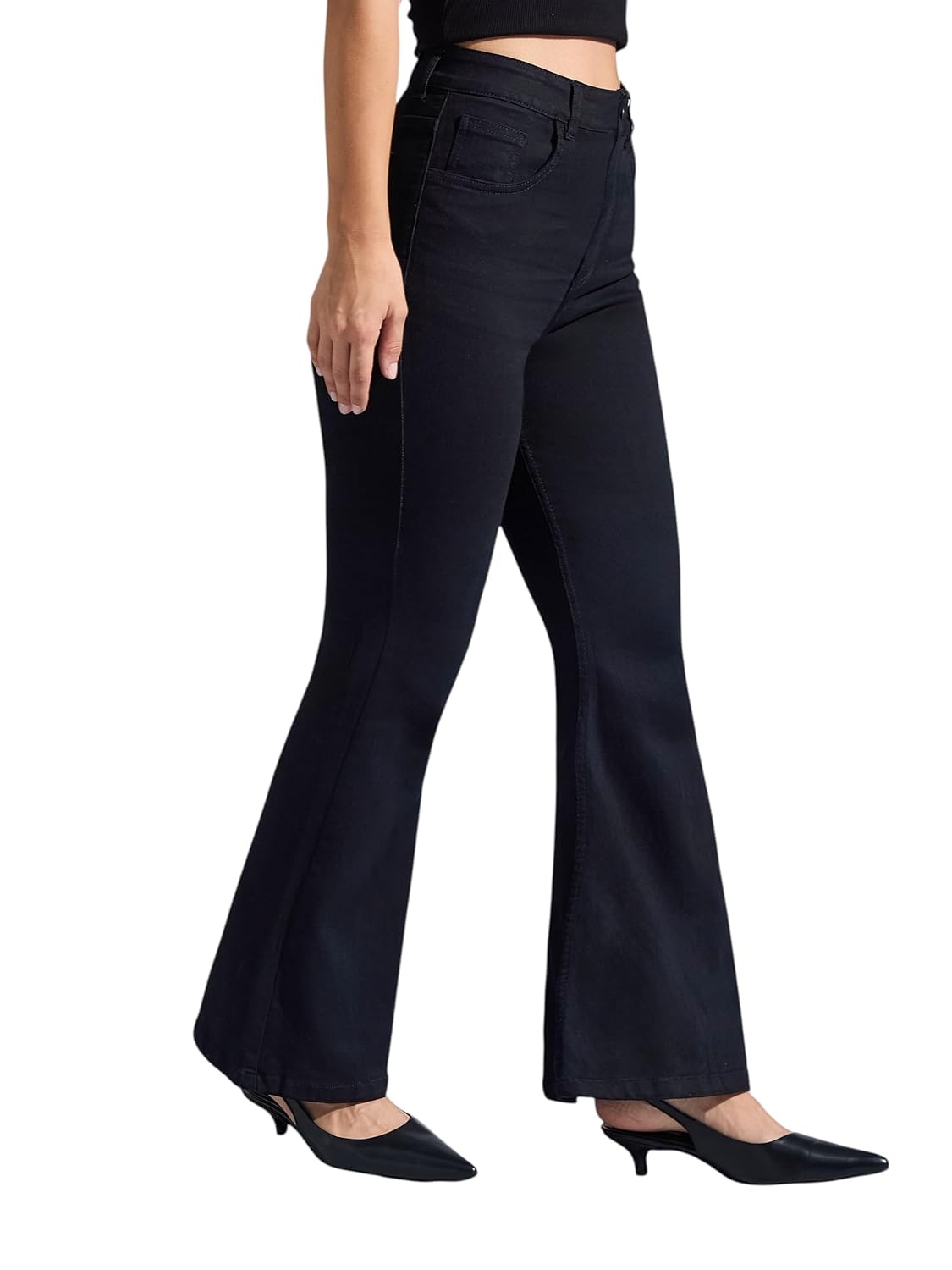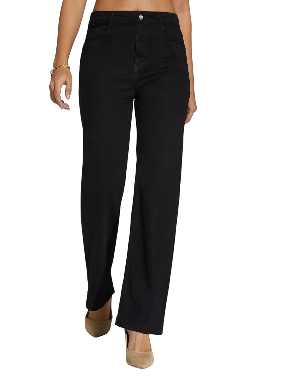 • Style: Flared | Belt: NA | Closure: Button and Zip Fly | Length: Regular | Pockets: 1 Coin, 2 Patch & 2 Side Pocket | Fit: Wide leg | Stretch: No | Rise: High Rise