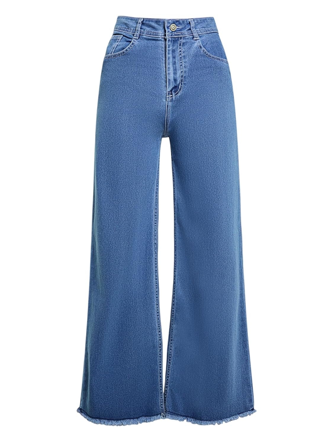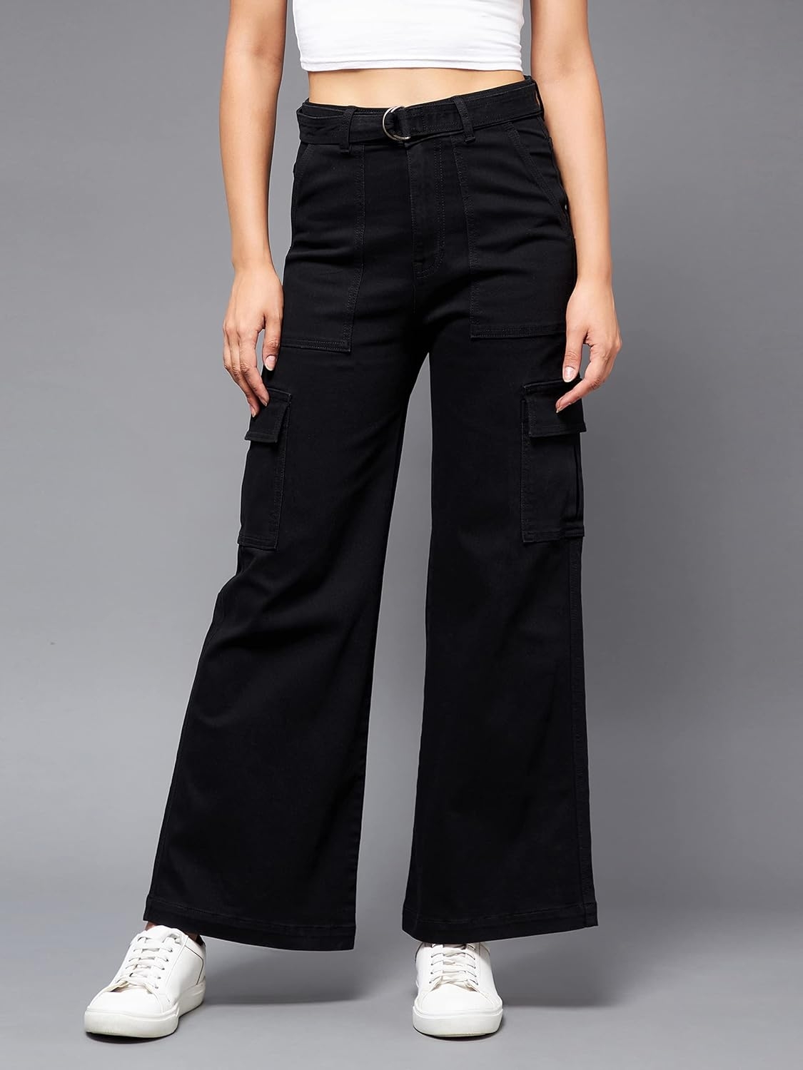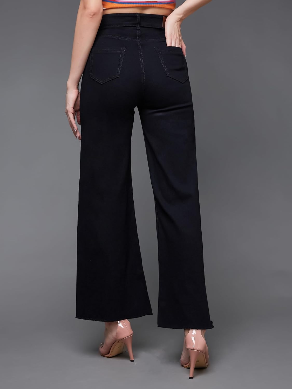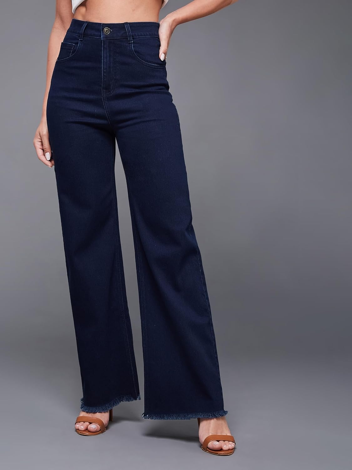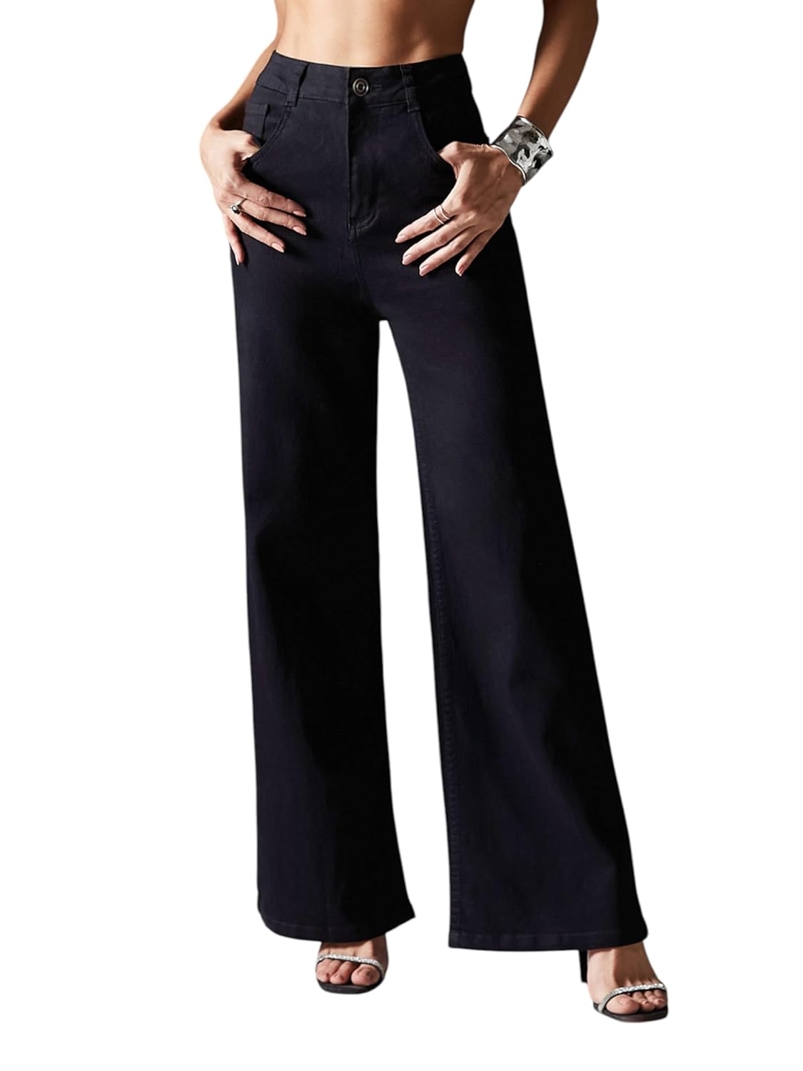 • Style: Flared | Belt: NA | Closure: Button and Zip Fly | Length: Regular | Pockets: 1 Coin, 2 Patch & 2 Side Pocket | Fit: Wide leg | Stretch: No | Rise: High Rise
