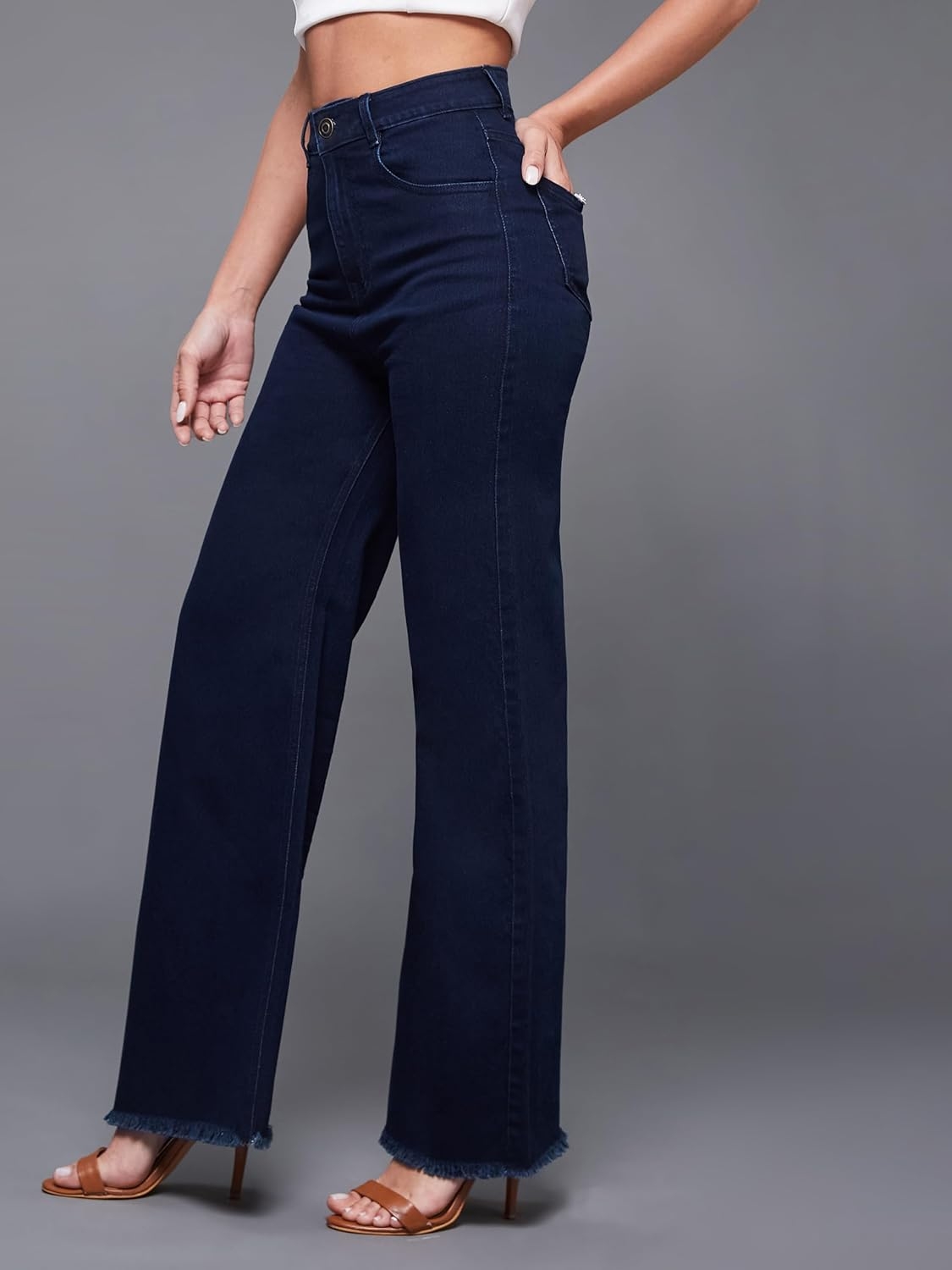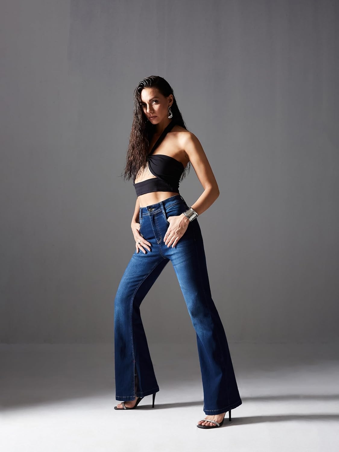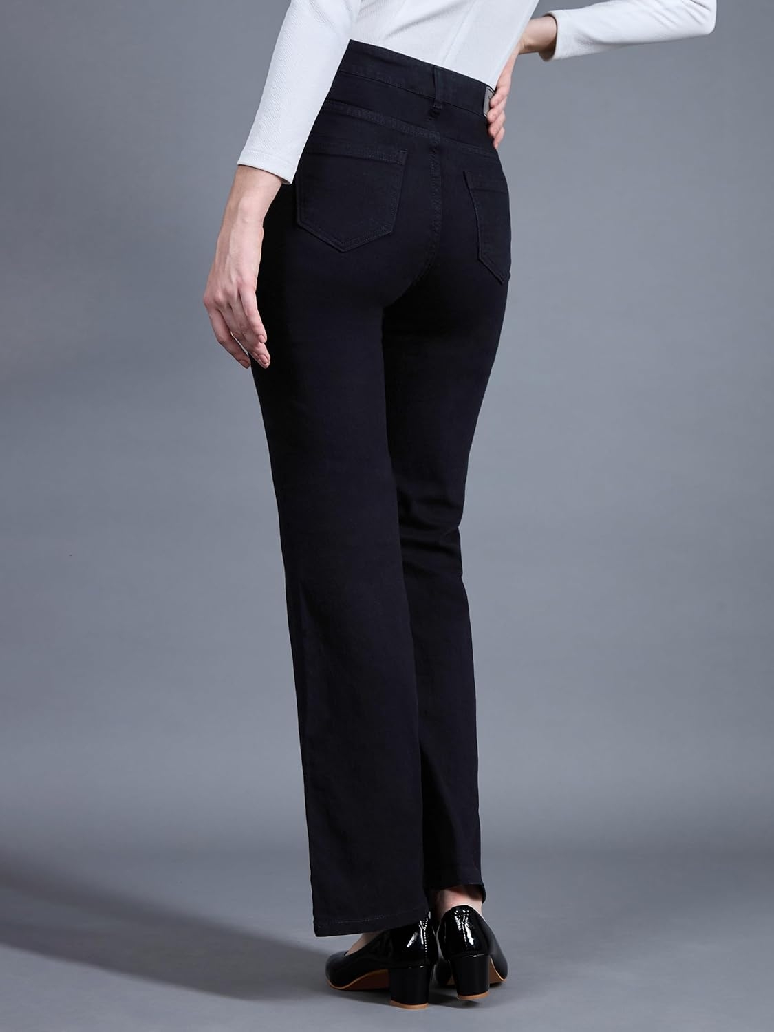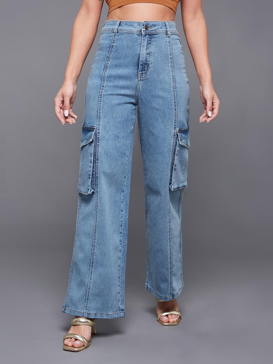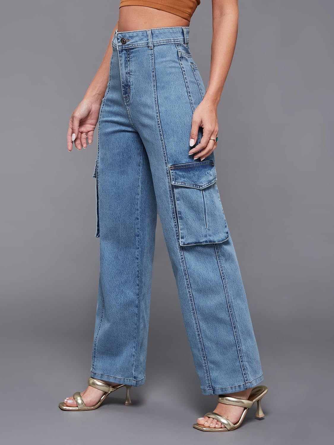 • Style: Flared | Belt: NA | Closure: Button and Zip Fly | Length: Regular | Pockets: 1 Coin, 2 Patch & 2 Side Pocket | Fit: Wide leg | Stretch: No | Rise: High Rise
