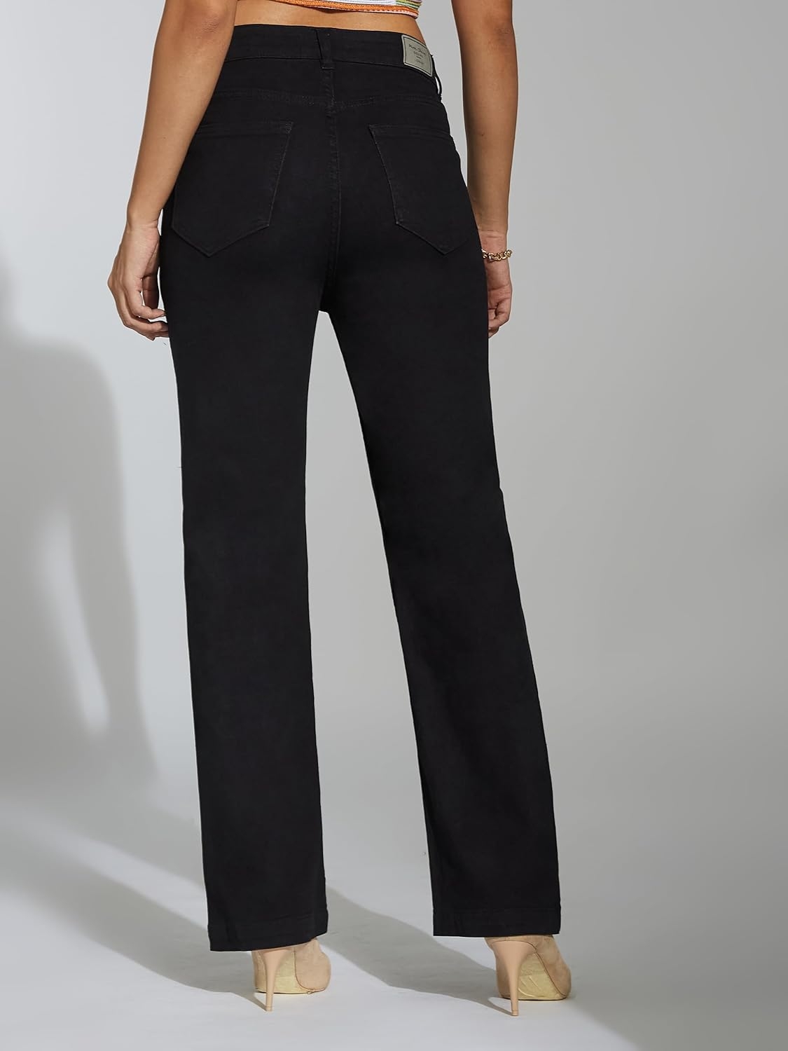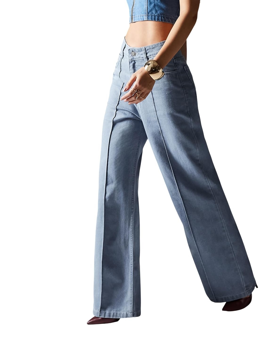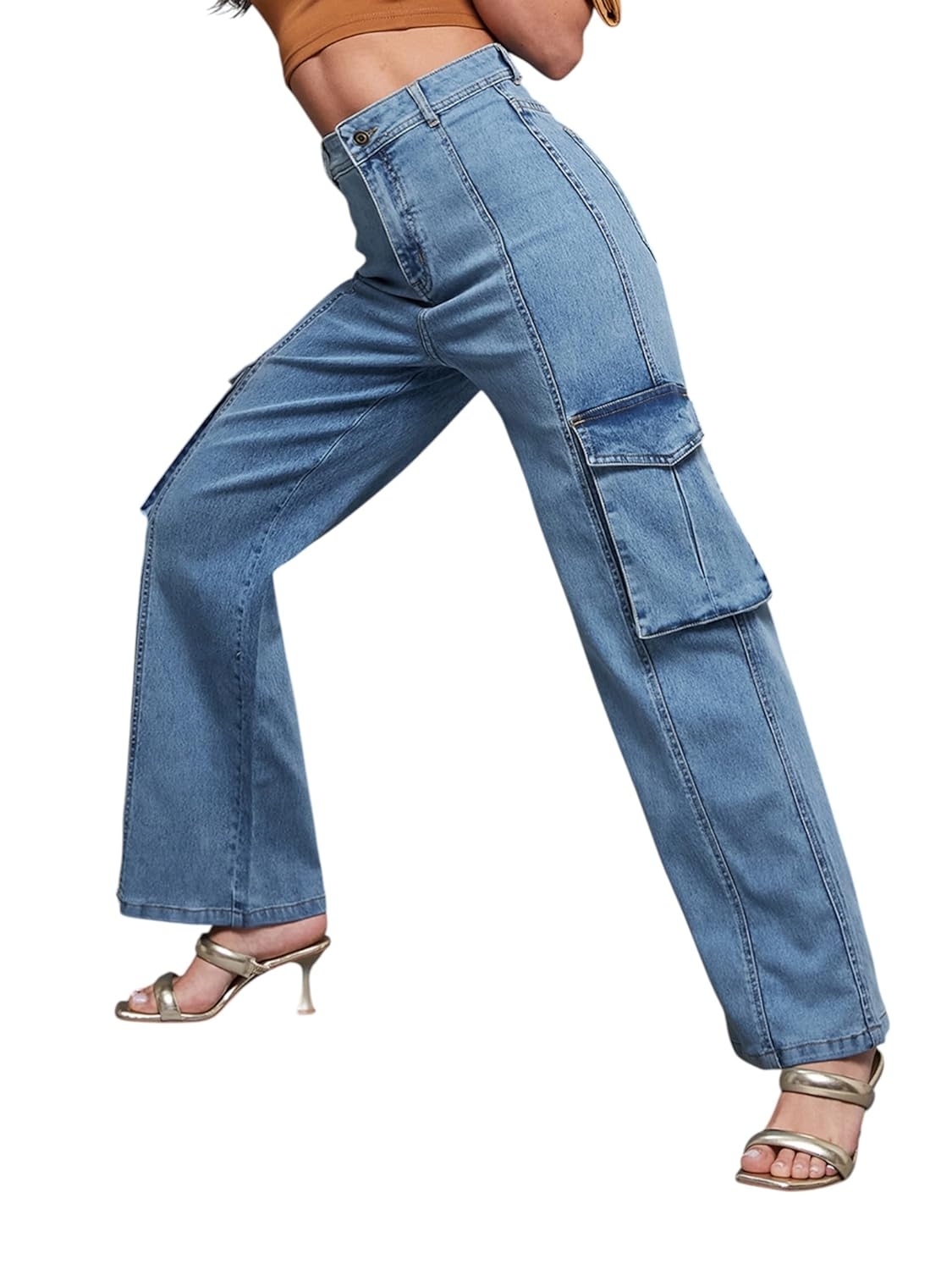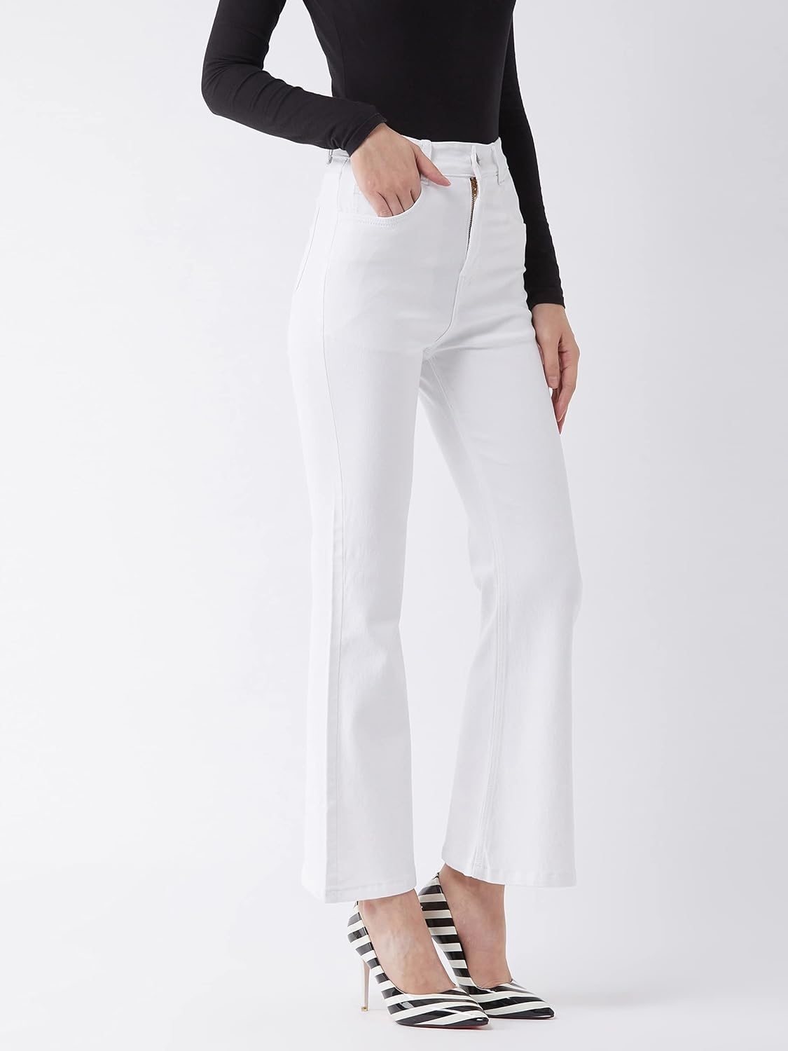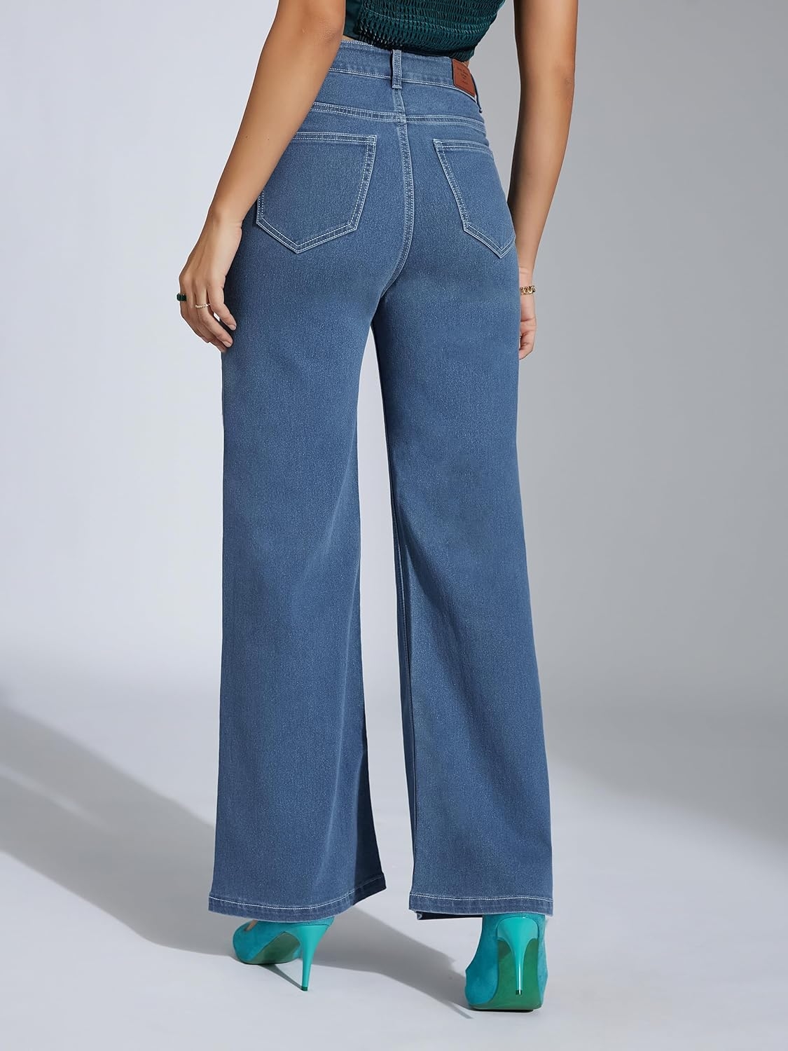 • Style: Flared | Belt: NA | Closure: Button and Zip Fly | Length: Regular | Pockets: 1 Coin, 2 Patch & 2 Side Pocket | Fit: Wide leg | Stretch: No | Rise: High Rise
