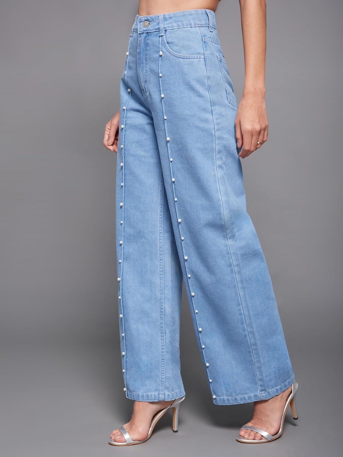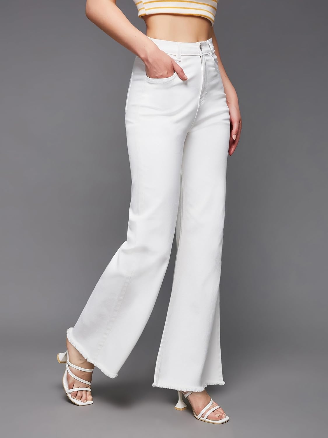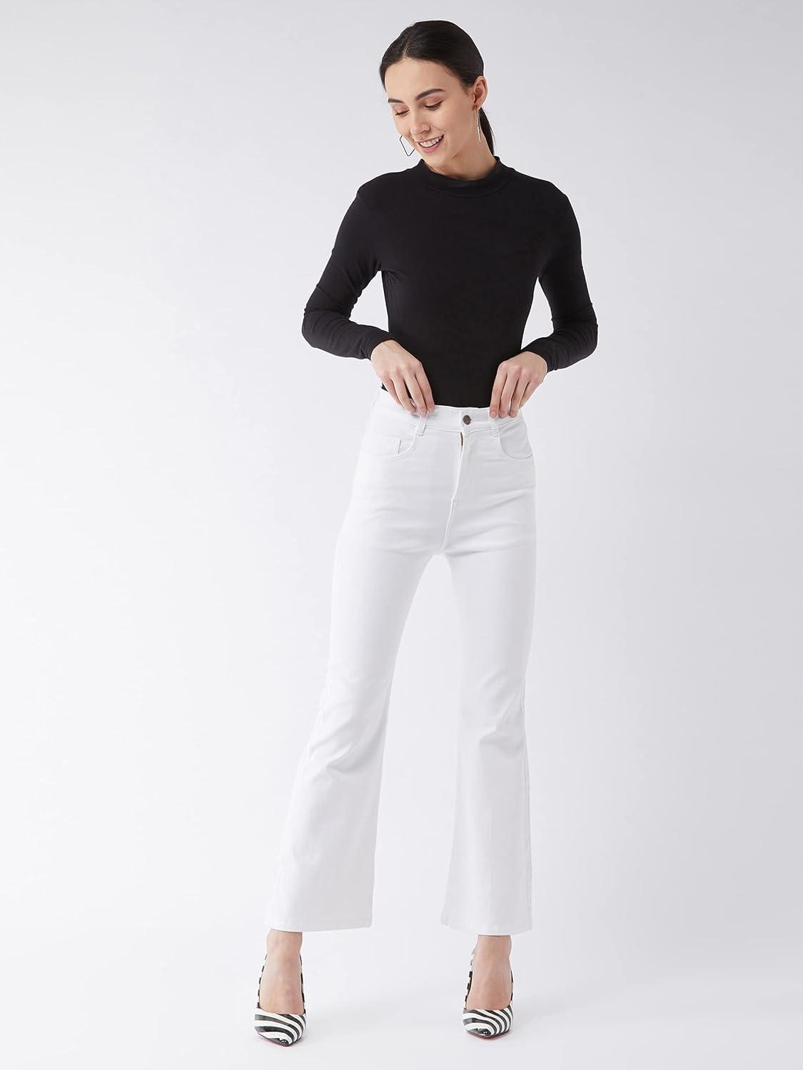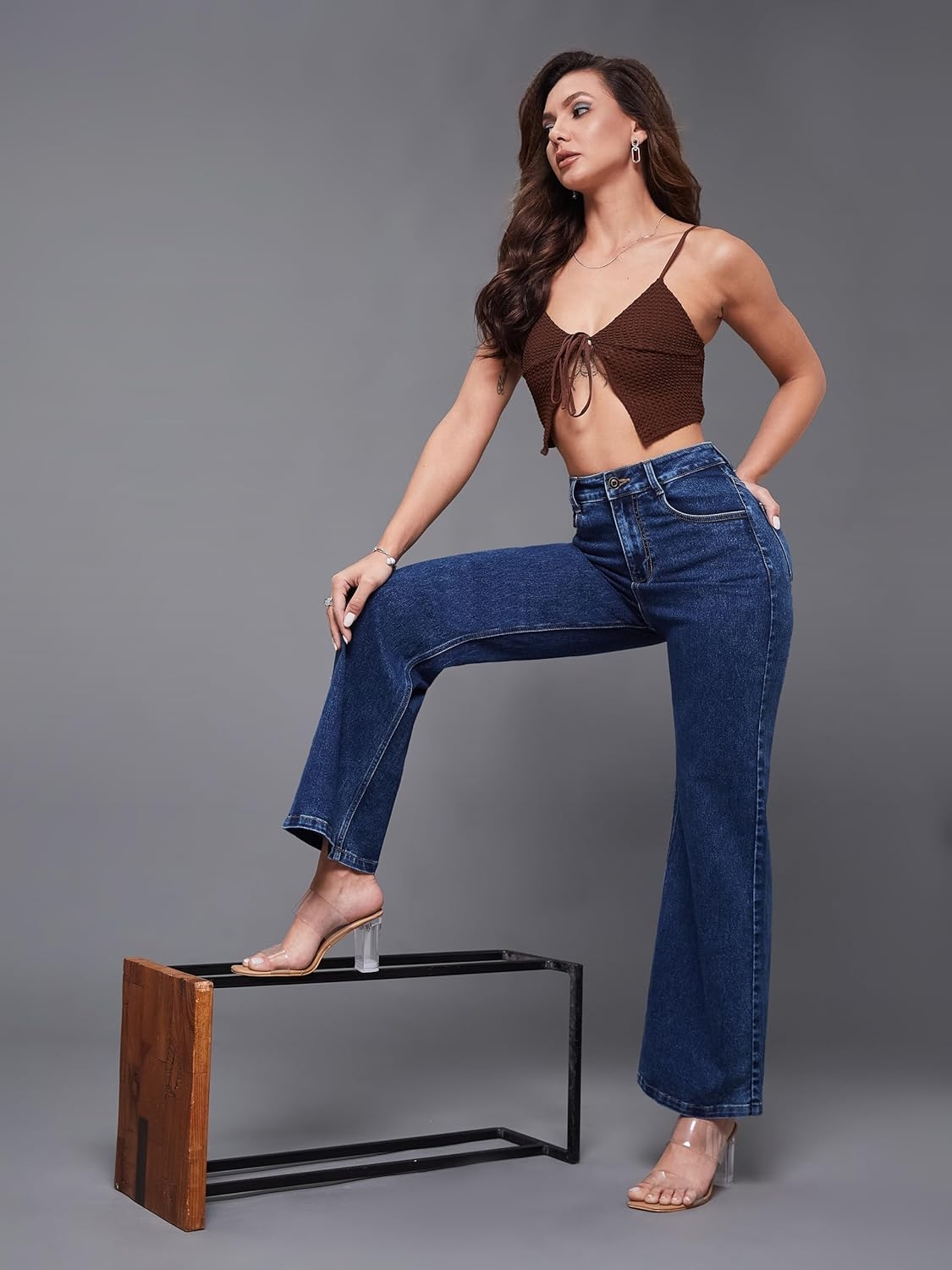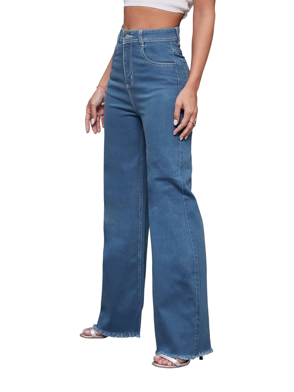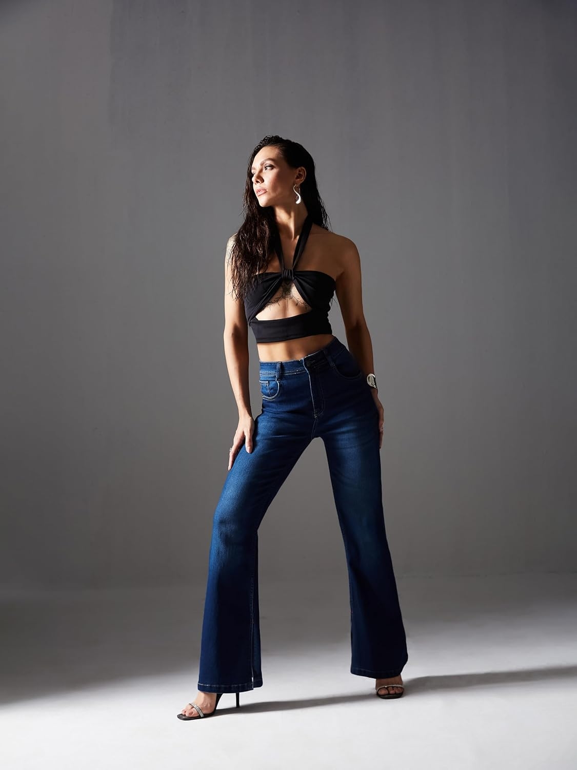 • Style: Flared | Belt: NA | Closure: Button and Zip Fly | Length: Regular | Pockets: 1 Coin, 2 Patch & 2 Side Pocket | Fit: Wide leg | Stretch: No | Rise: High Rise