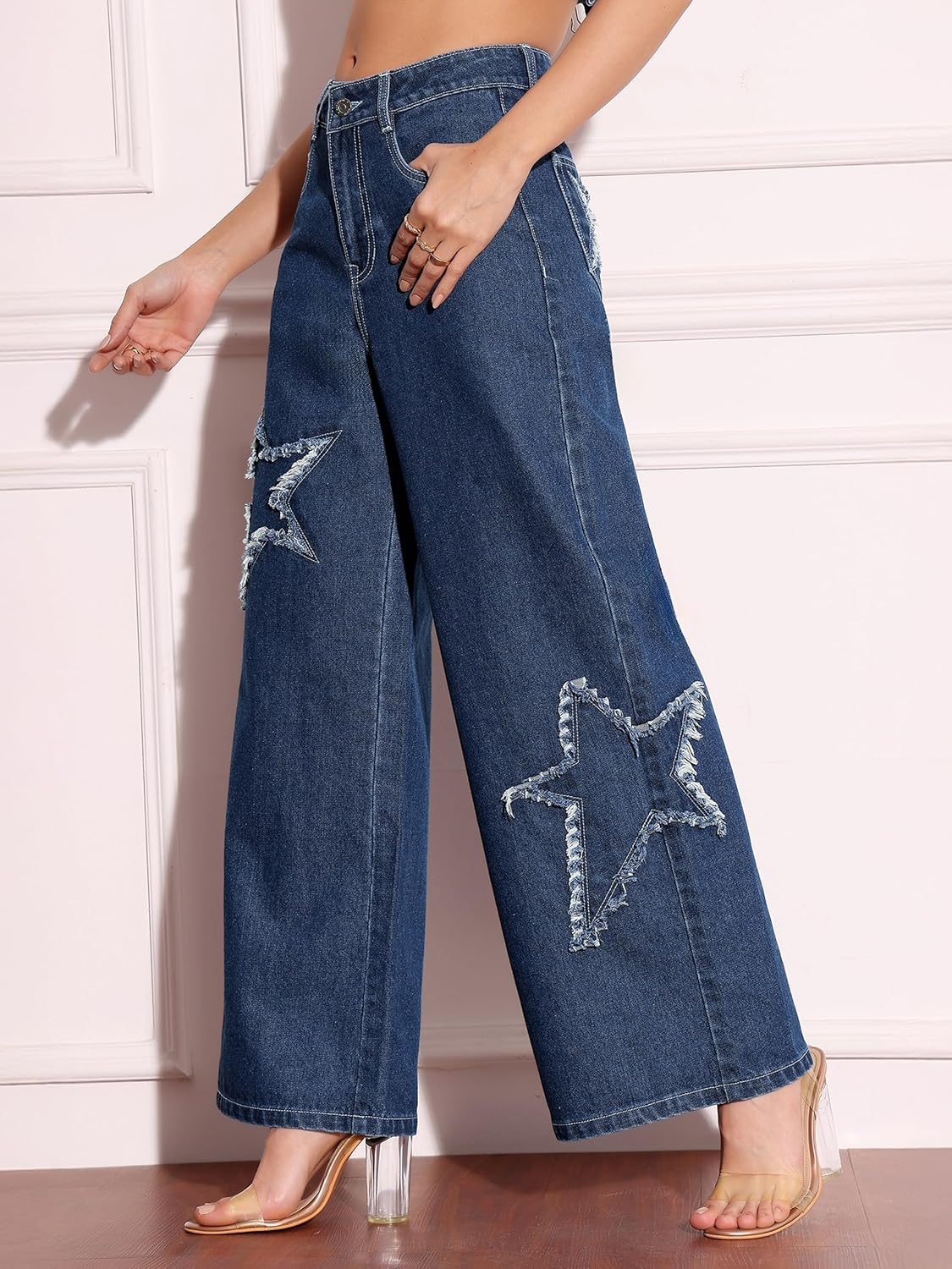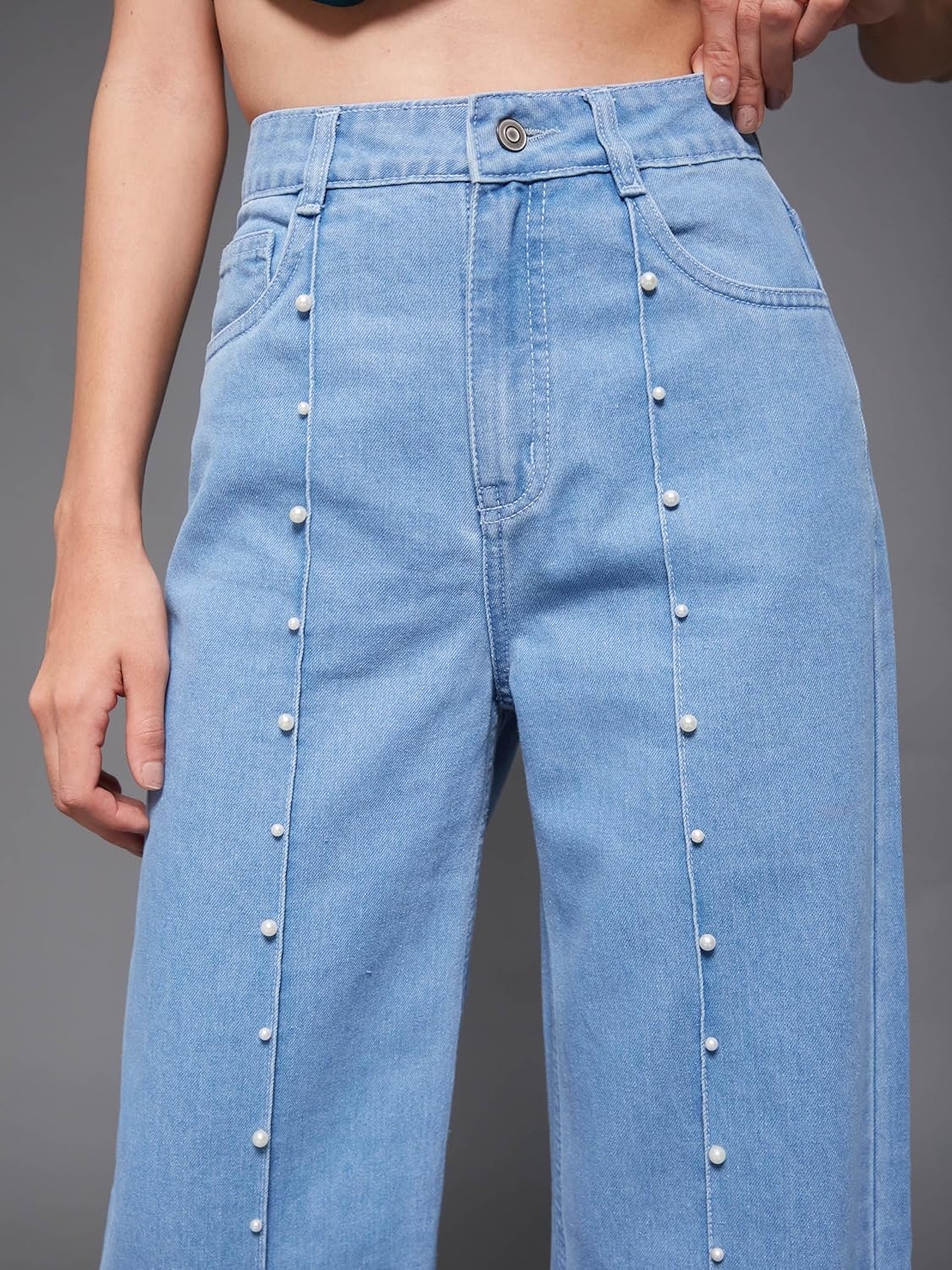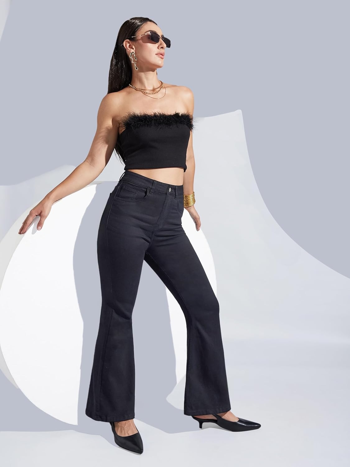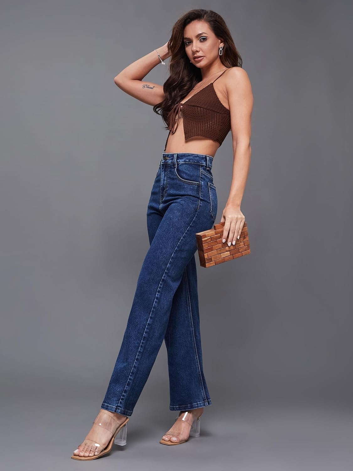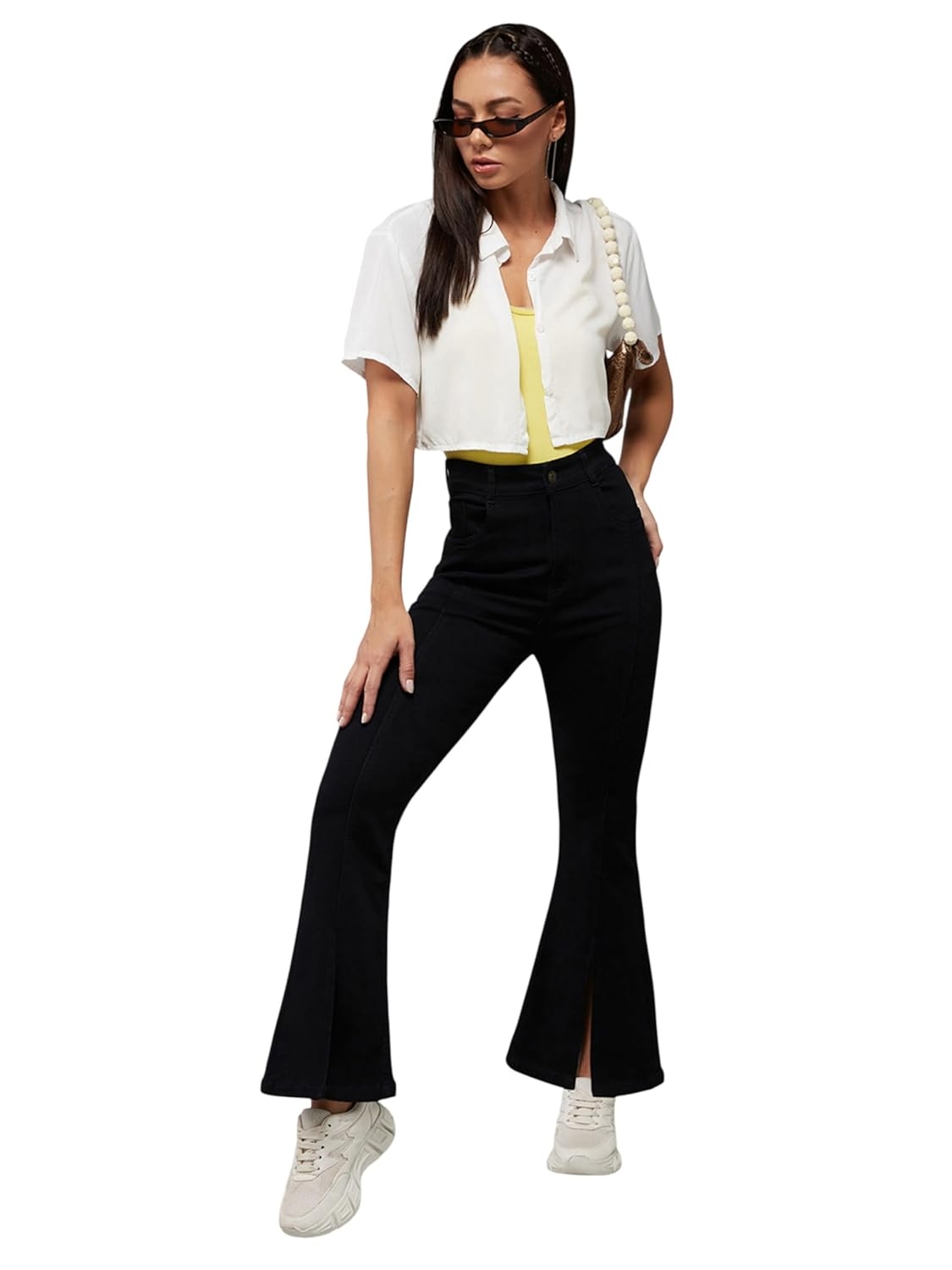 • Style: Flared | Belt: NA | Closure: Button and Zip Fly | Length: Regular | Pockets: 1 Coin, 2 Patch & 2 Side Pocket | Fit: Wide leg | Stretch: No | Rise: High Rise