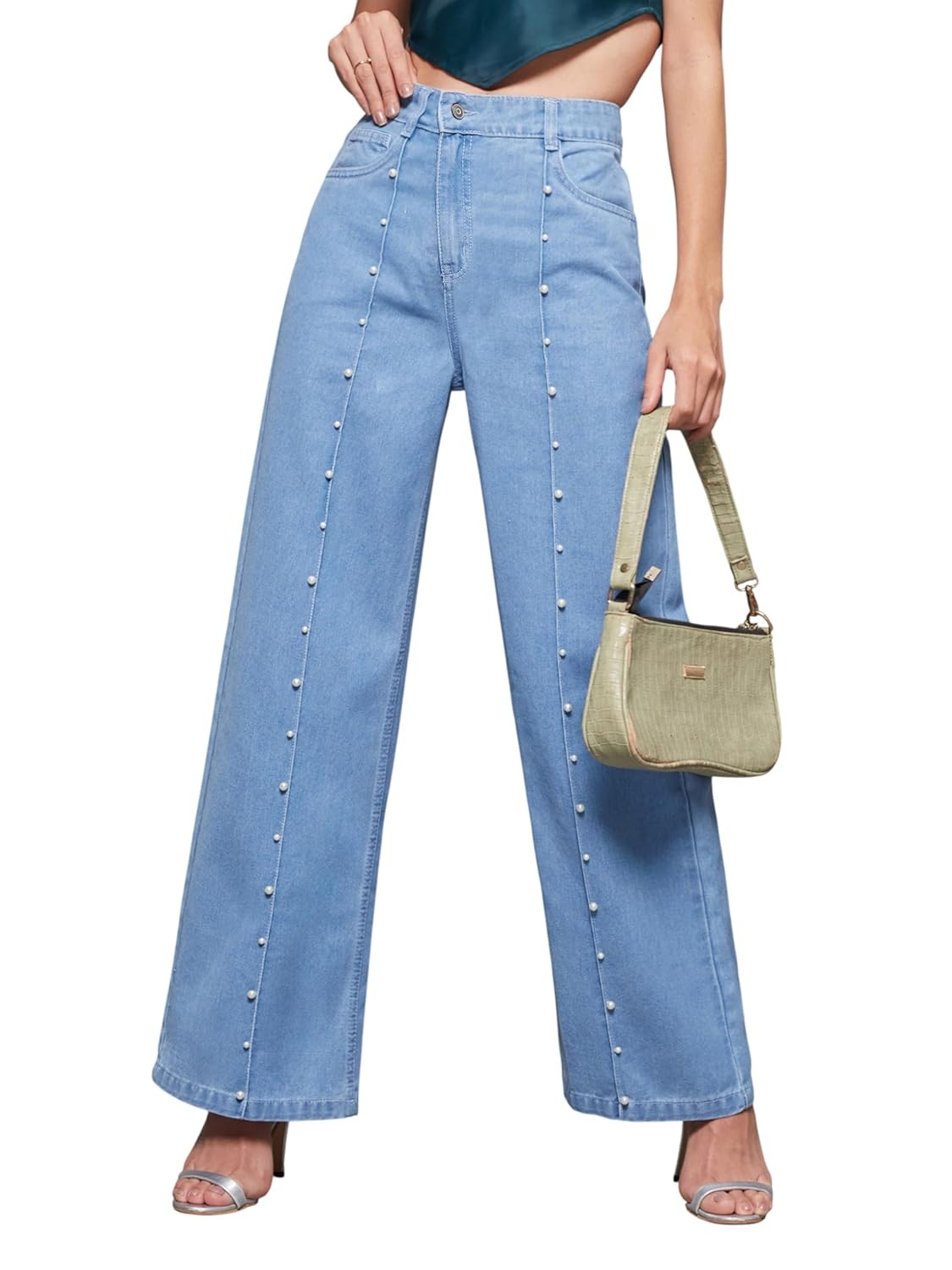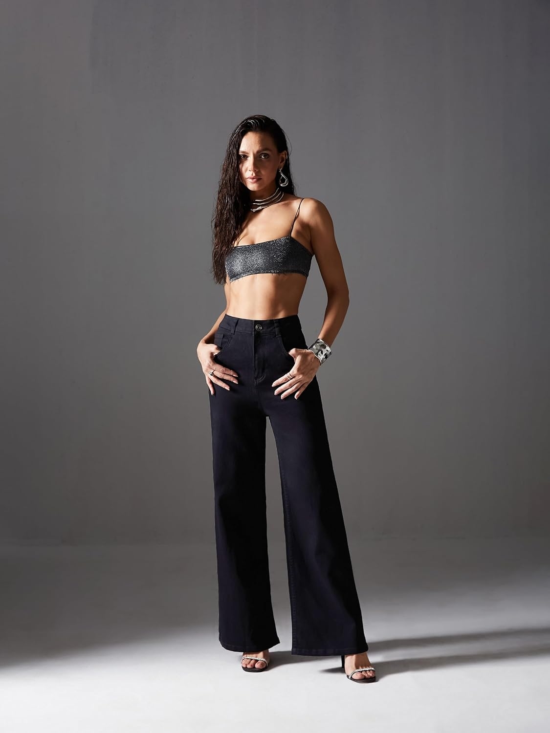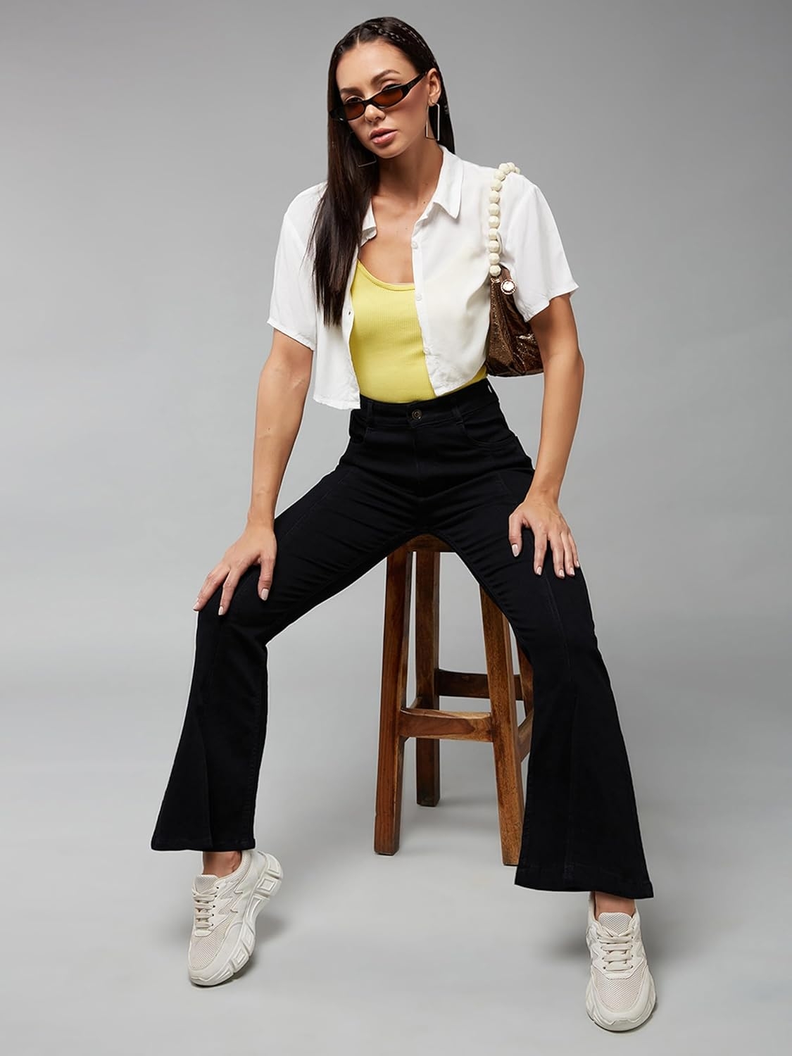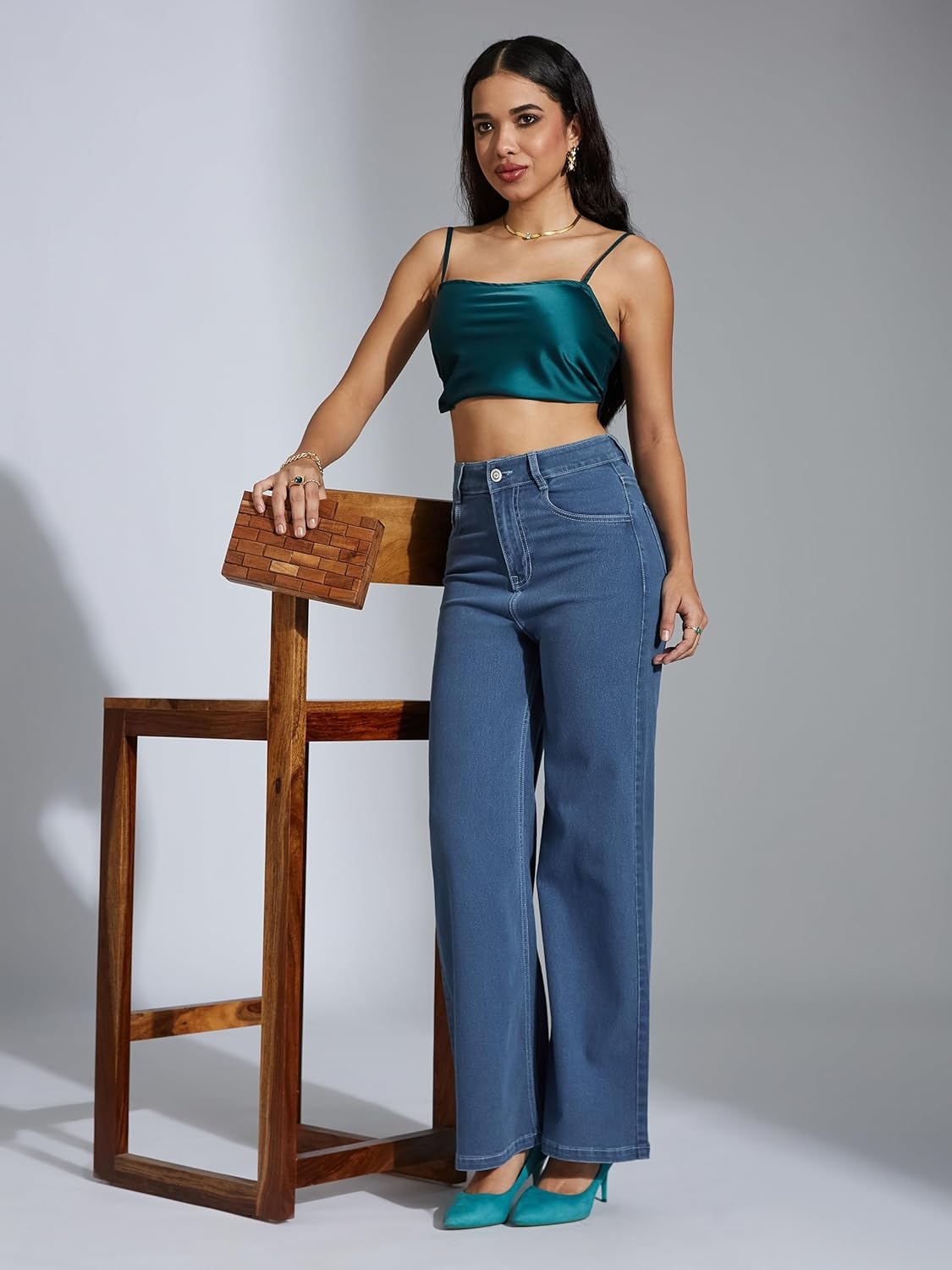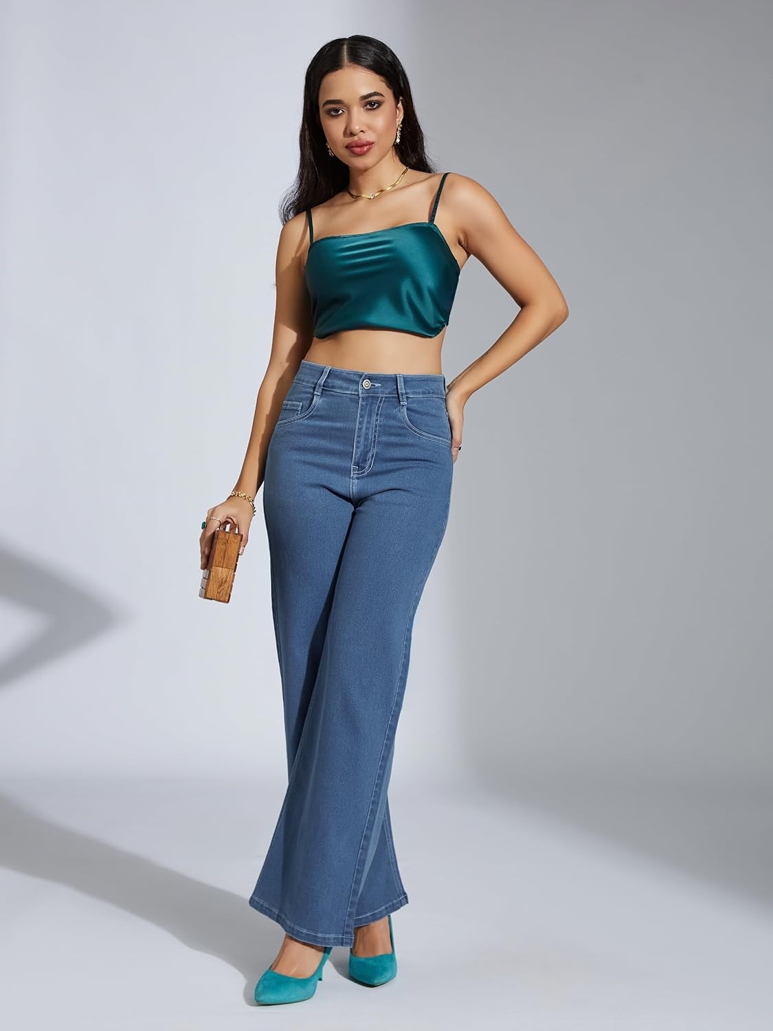 • Style: Flared | Belt: NA | Closure: Button and Zip Fly | Length: Regular | Pockets: 1 Coin, 2 Patch & 2 Side Pocket | Fit: Wide leg | Stretch: No | Rise: High Rise