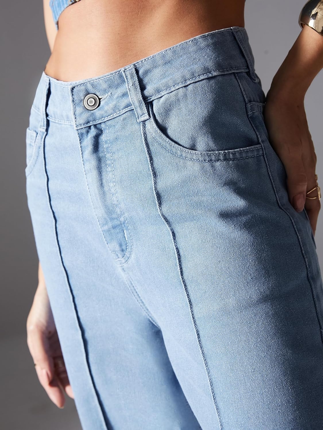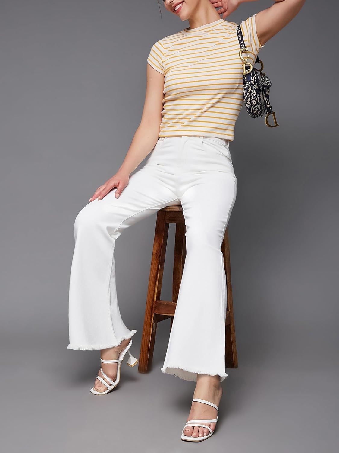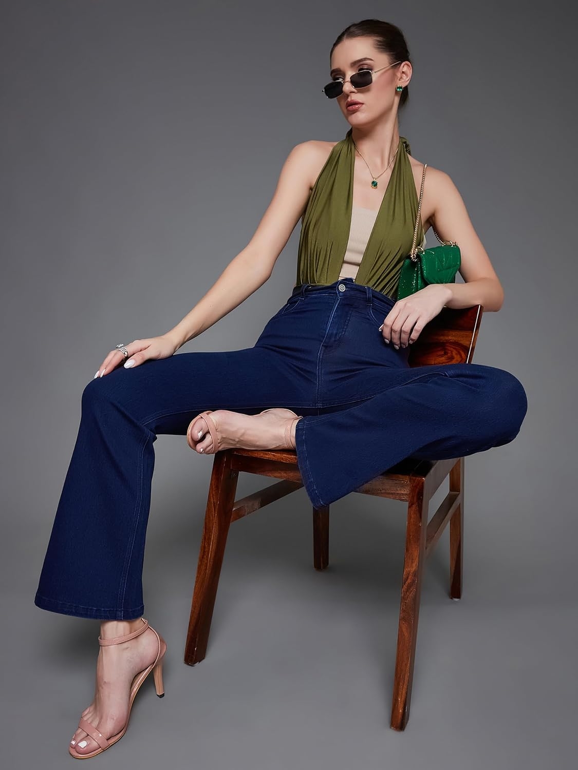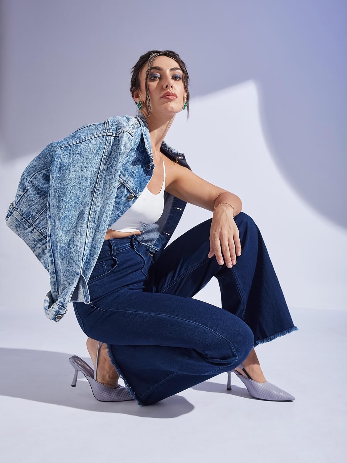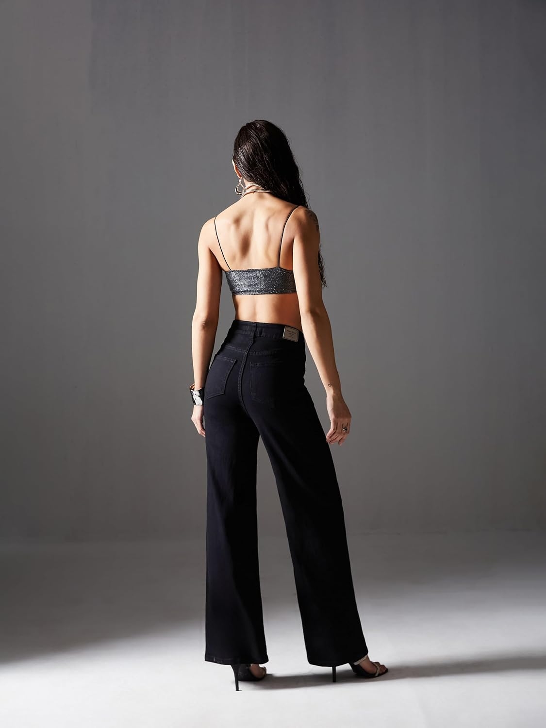 • Style: Flared | Belt: NA | Closure: Button and Zip Fly | Length: Regular | Pockets: 1 Coin, 2 Patch & 2 Side Pocket | Fit: Wide leg | Stretch: No | Rise: High Rise