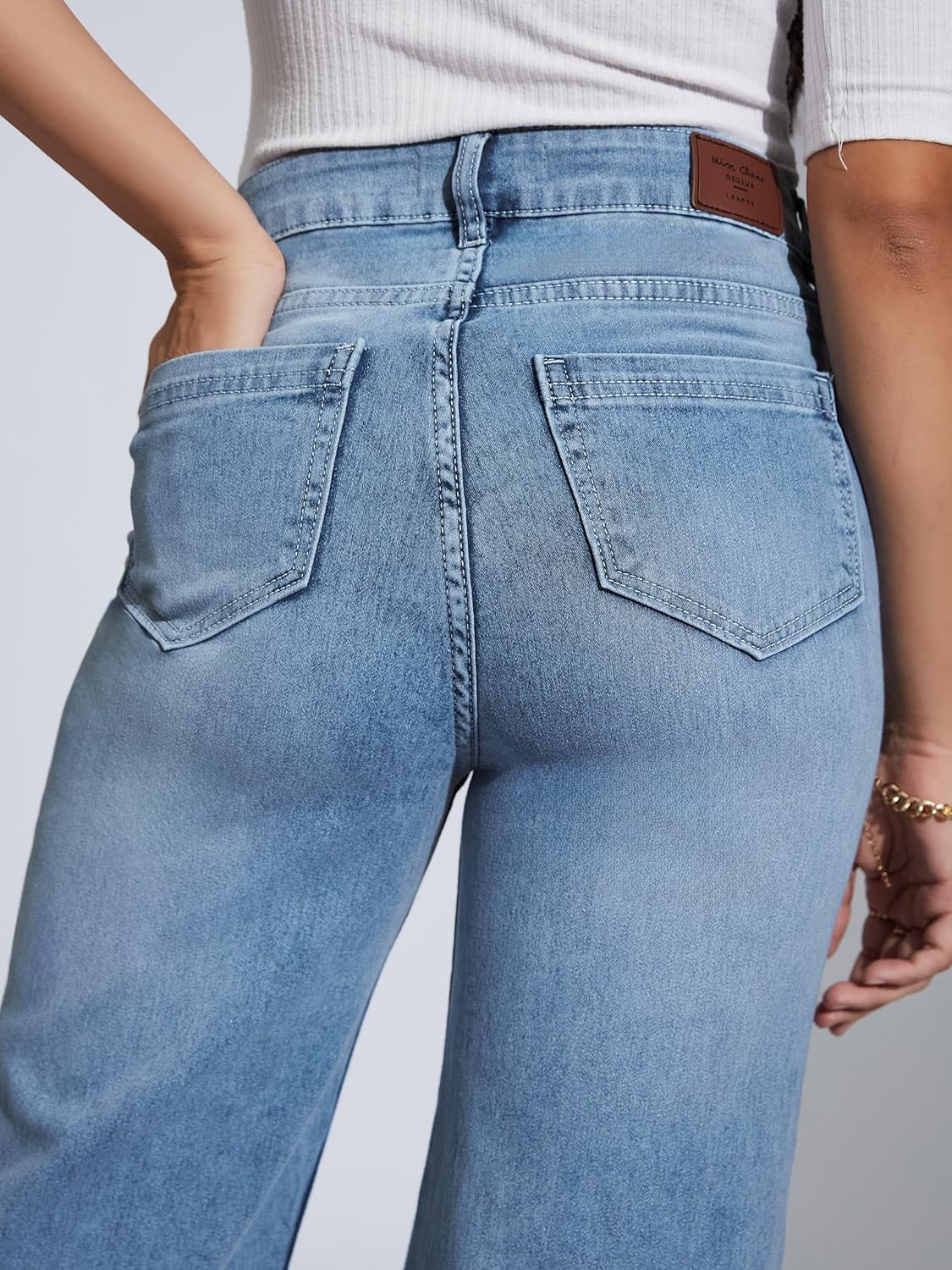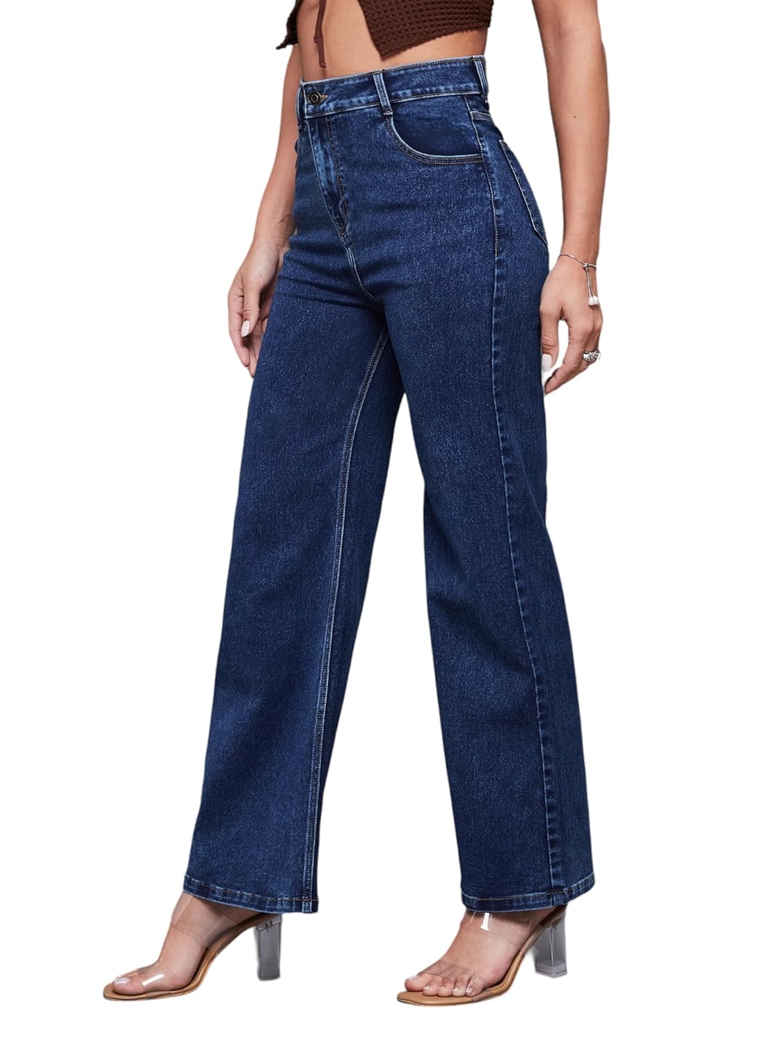 Miss Chase Women’s Wide-Leg High-Rise Regular-Length Stretchable Shaping Denim Jeans