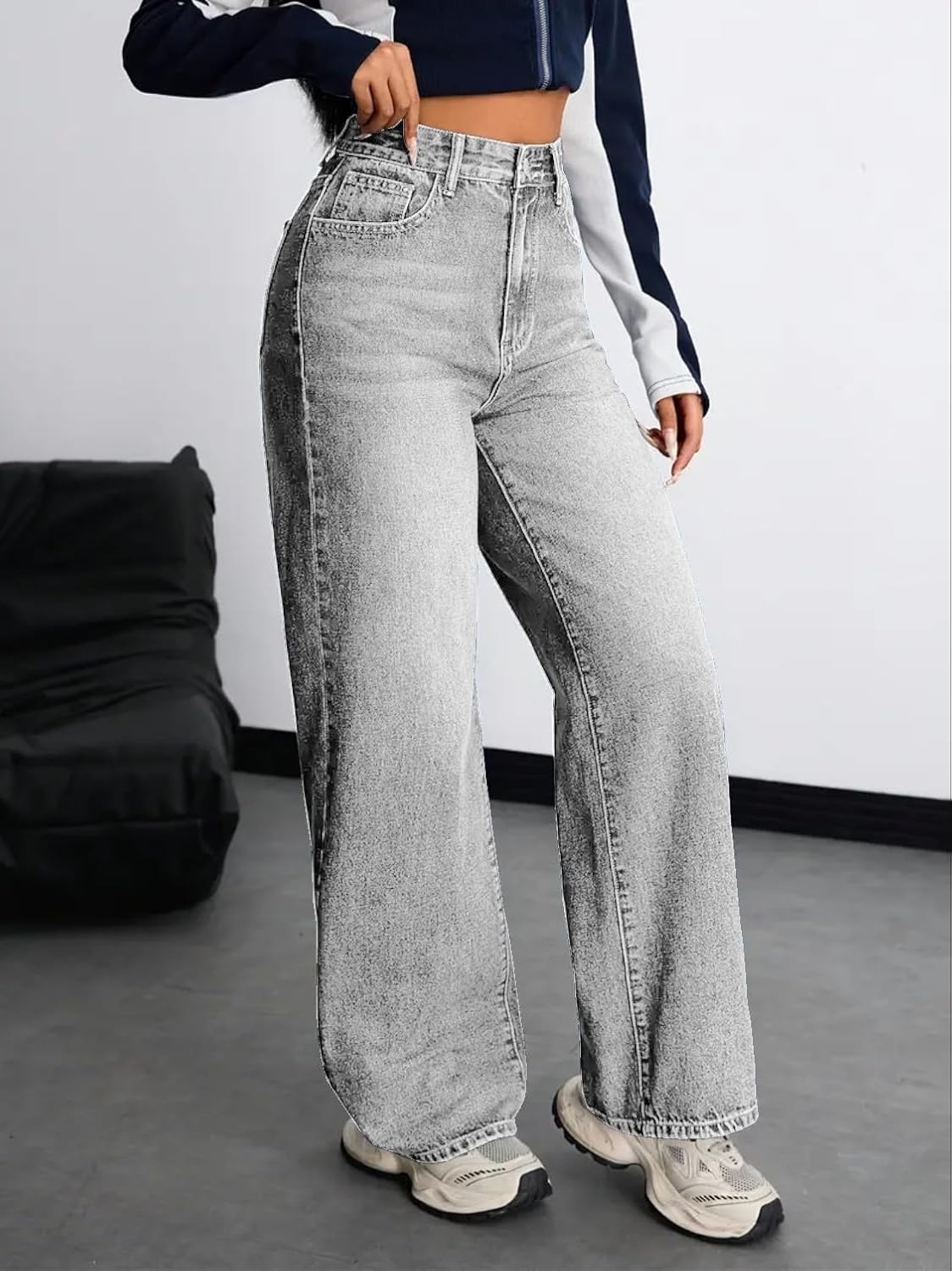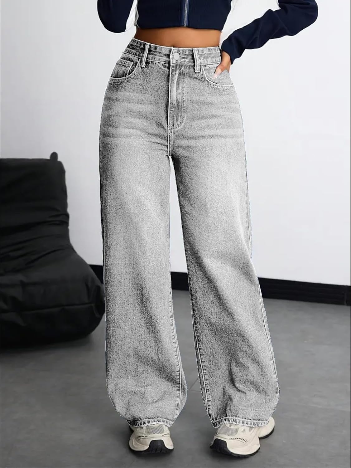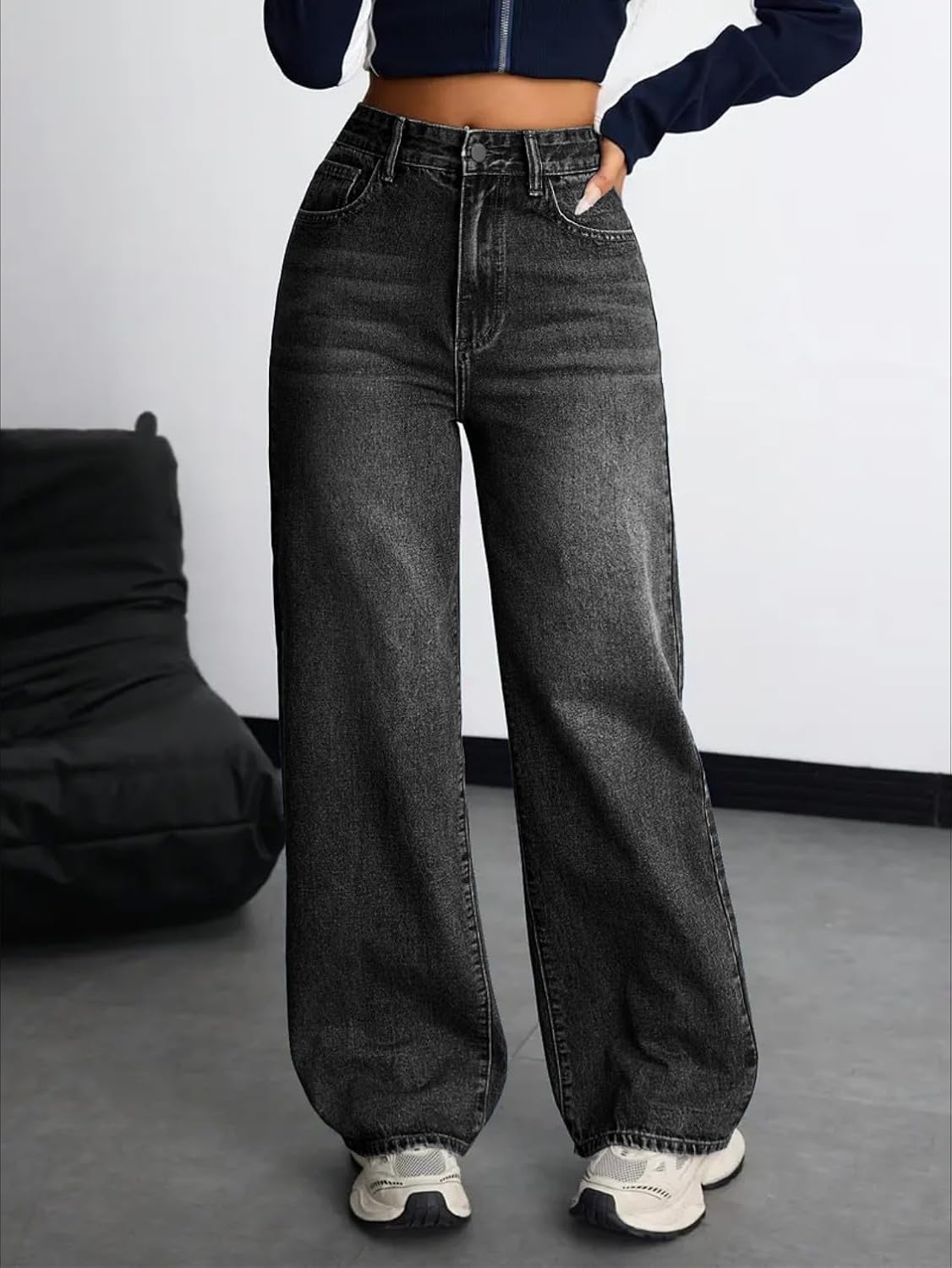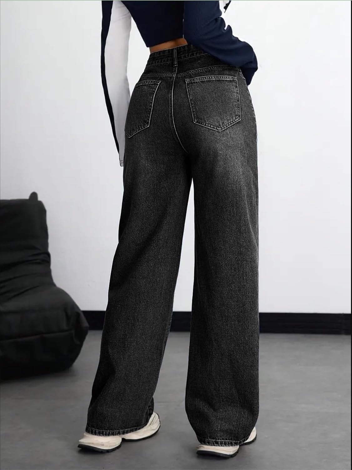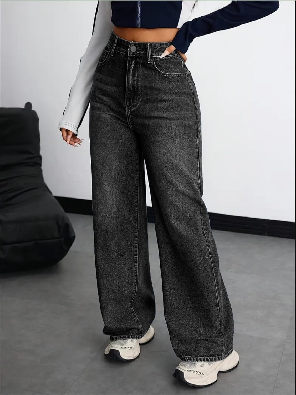 Featuring a high-rise waist and a loose, straight leg, these jeans capture the iconic, laid-back aesthetic of 90s fashion. The relaxed silhouette creates a cool, effortless vibe that’s perfect for both casual outings and stylish, elevated looks.