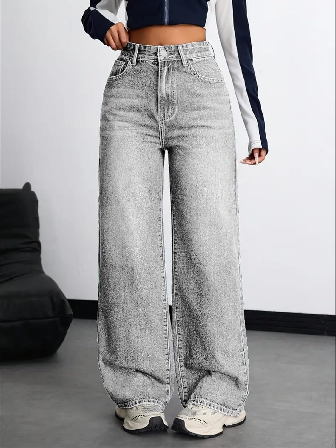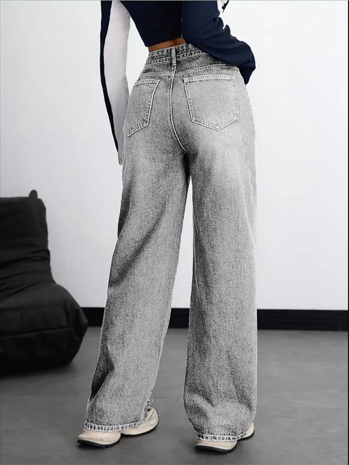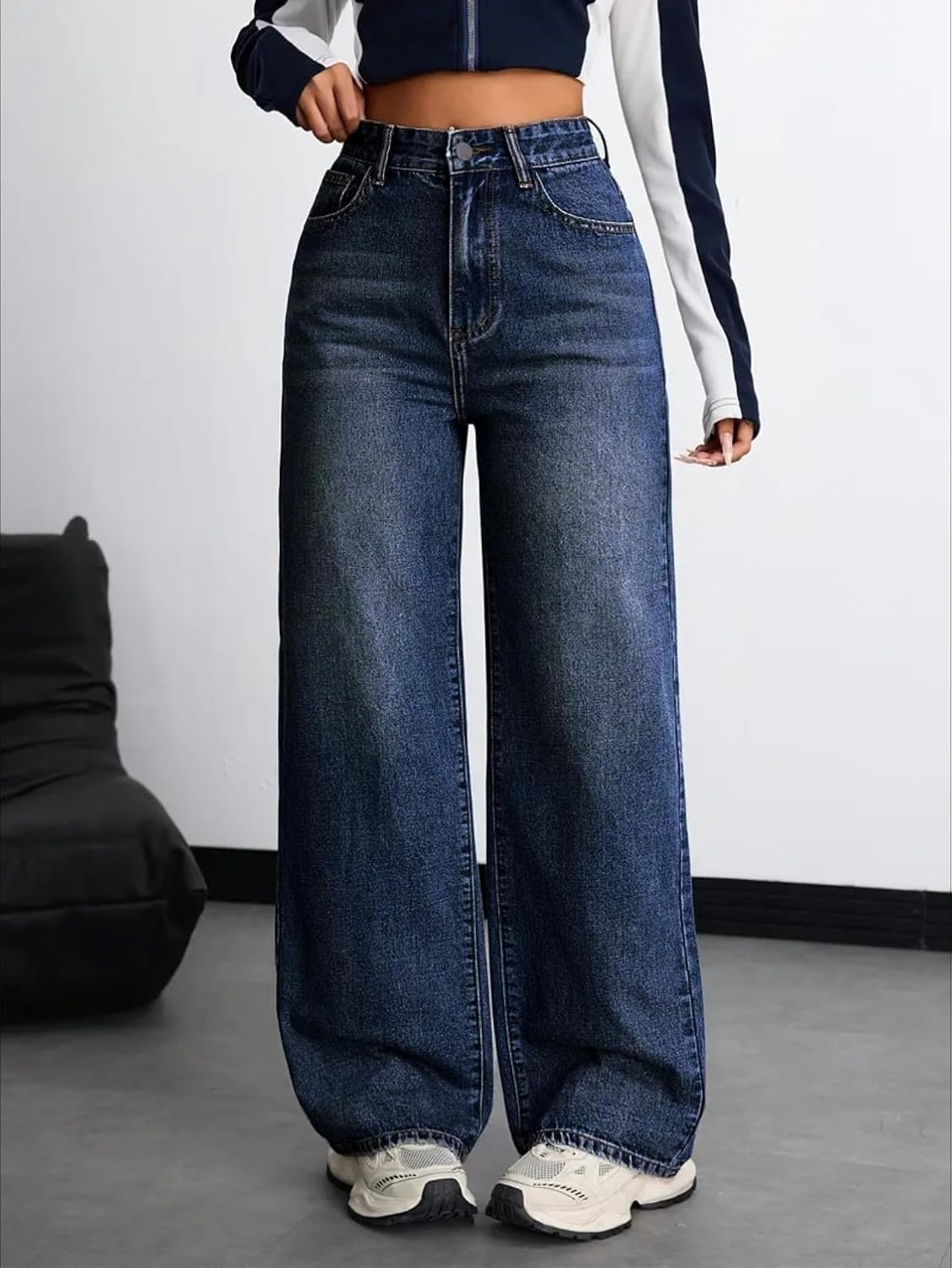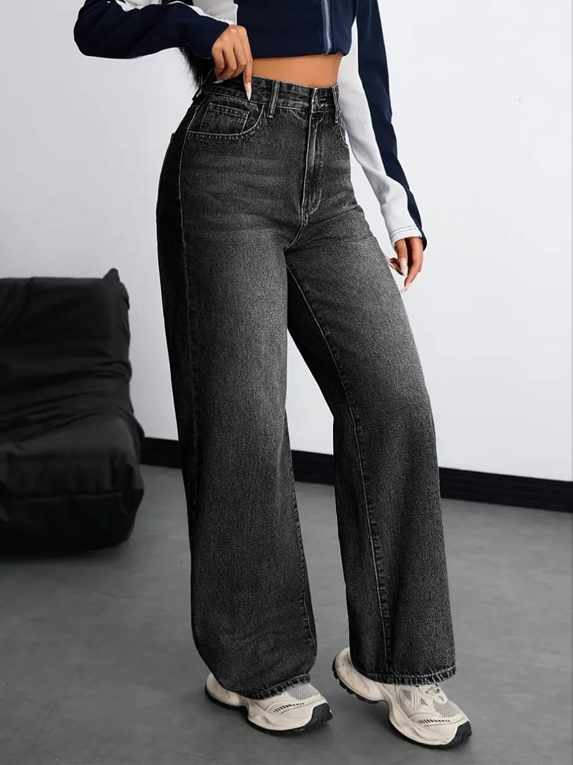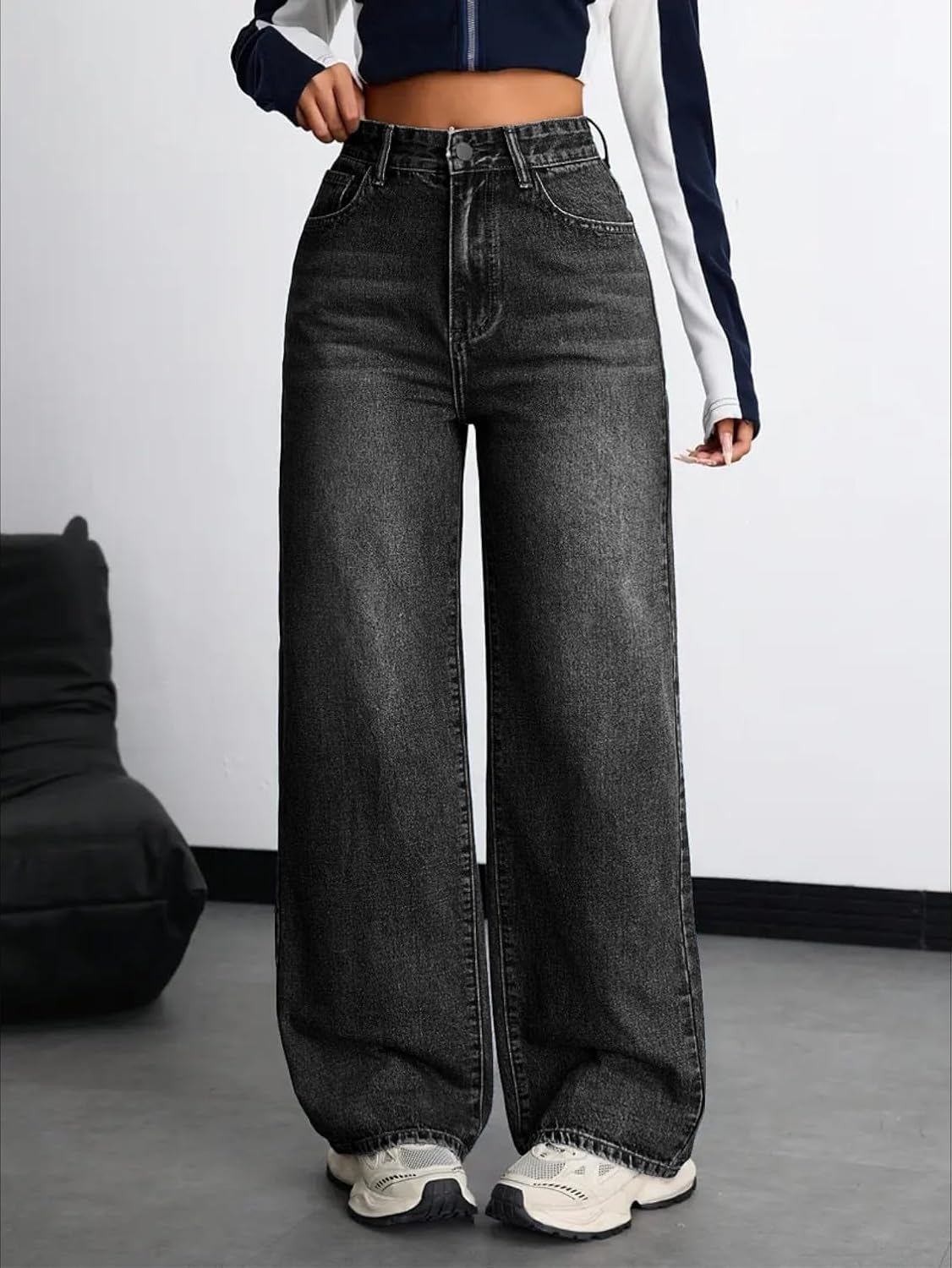 Featuring a high-rise waist and a loose, straight leg, these jeans capture the iconic, laid-back aesthetic of 90s fashion. The relaxed silhouette creates a cool, effortless vibe that’s perfect for both casual outings and stylish, elevated looks.