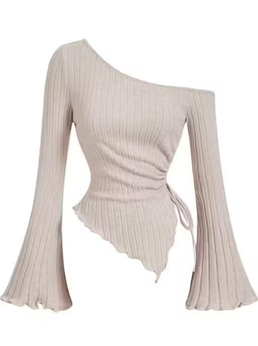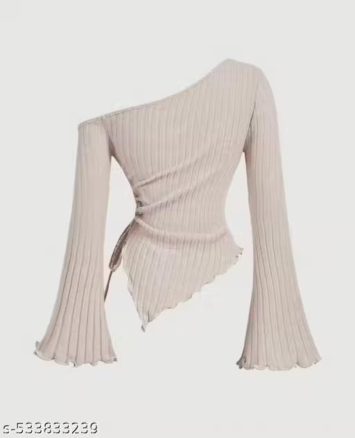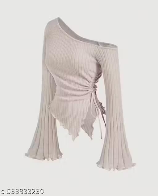 Secrate of Fashion for Women Apricot Drawstring Bell Sleeve Top – Polyester for_Casual Wear