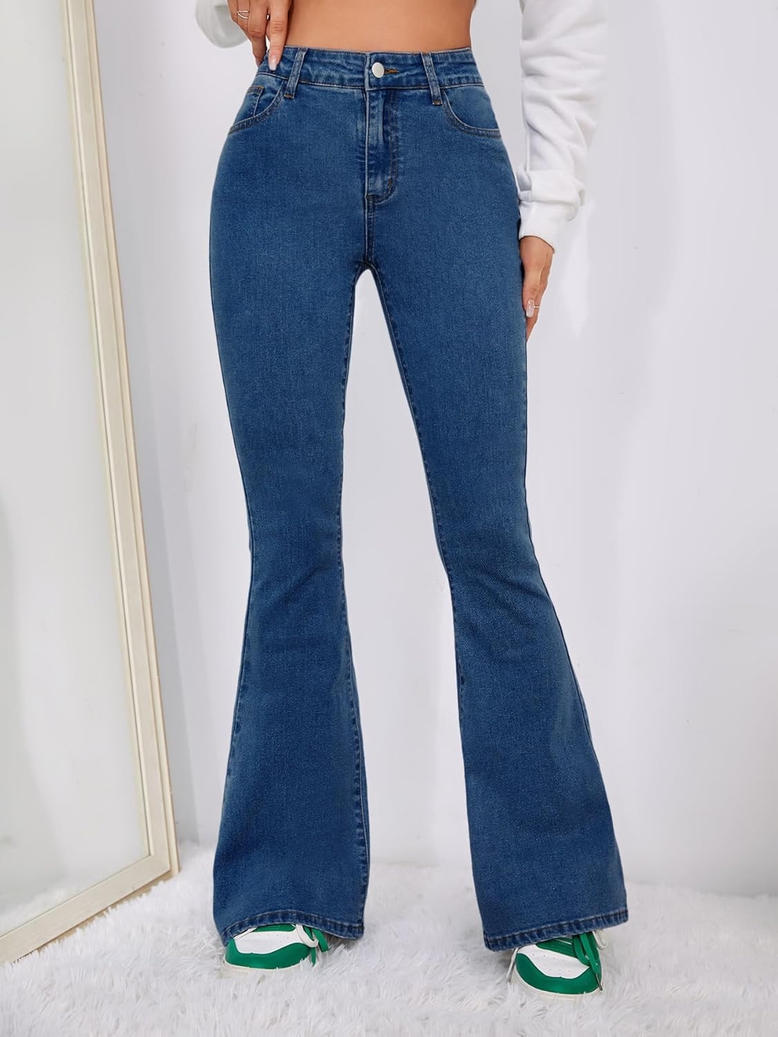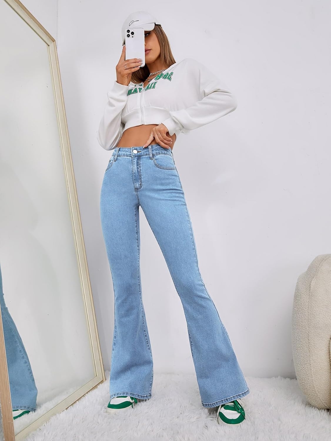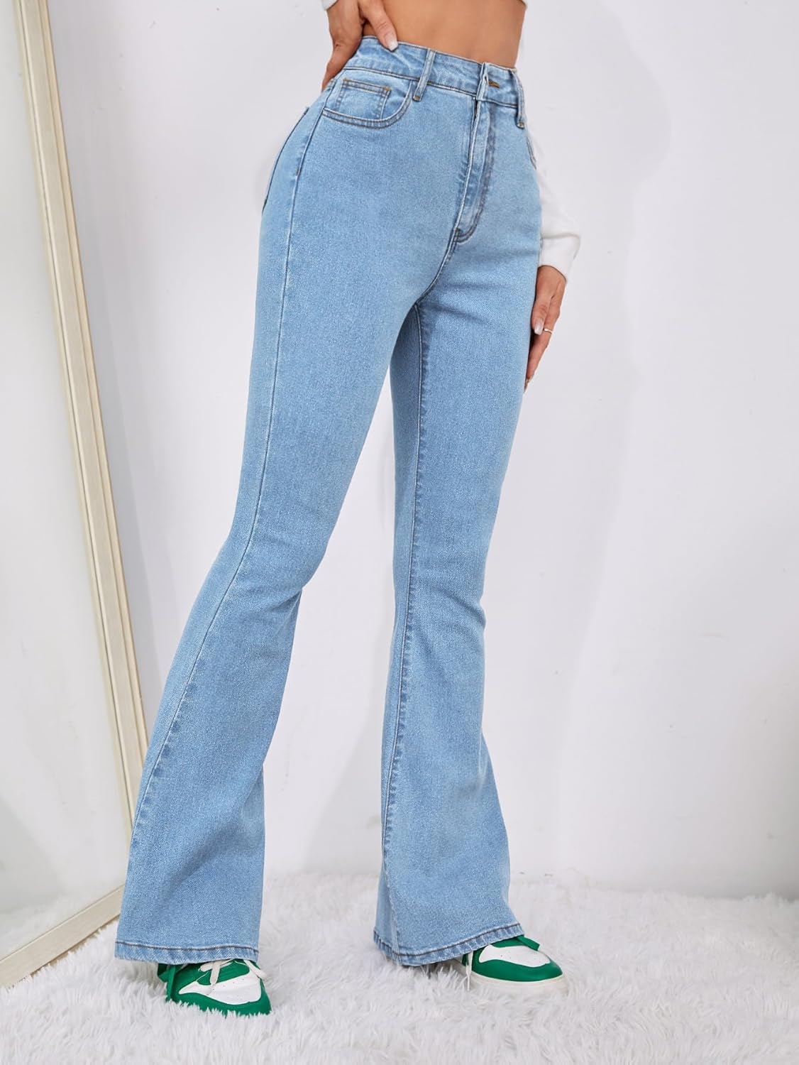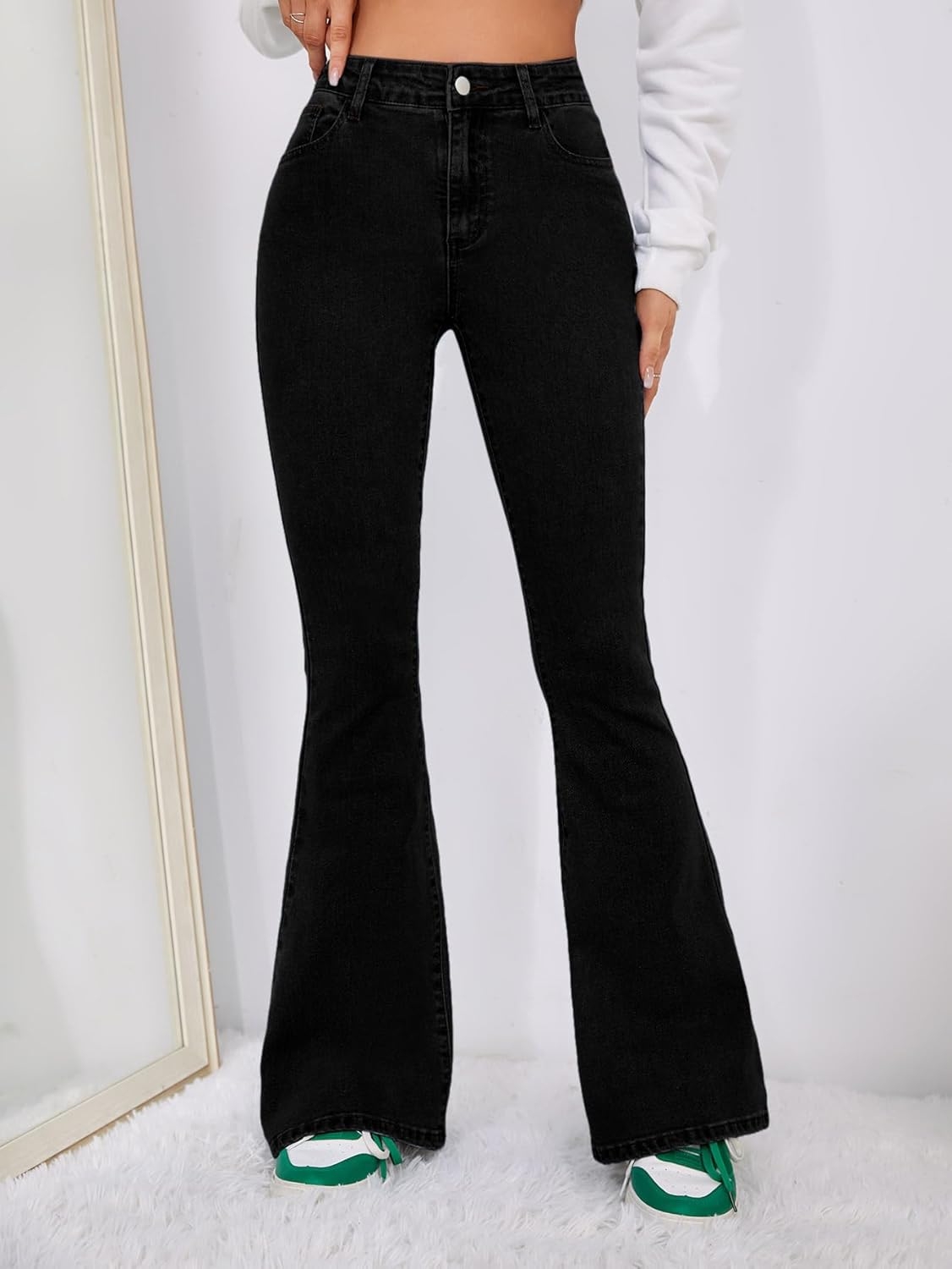 Features: High Waisted, Button And Zipper Fly, Flare Leg, Solid Color, Full Length, Breathable And Soft Fabric.easy To Pair With Tank Top, Tee Shirt, Sweater, Sweatshirt, Jacket, Sandals, Sneakers, Casual Shoes And So On.ideal For Casual Daily, Hanging Out, Weekend, Shopping, Going Out, School, Weekday, Trip And Other Occasions.