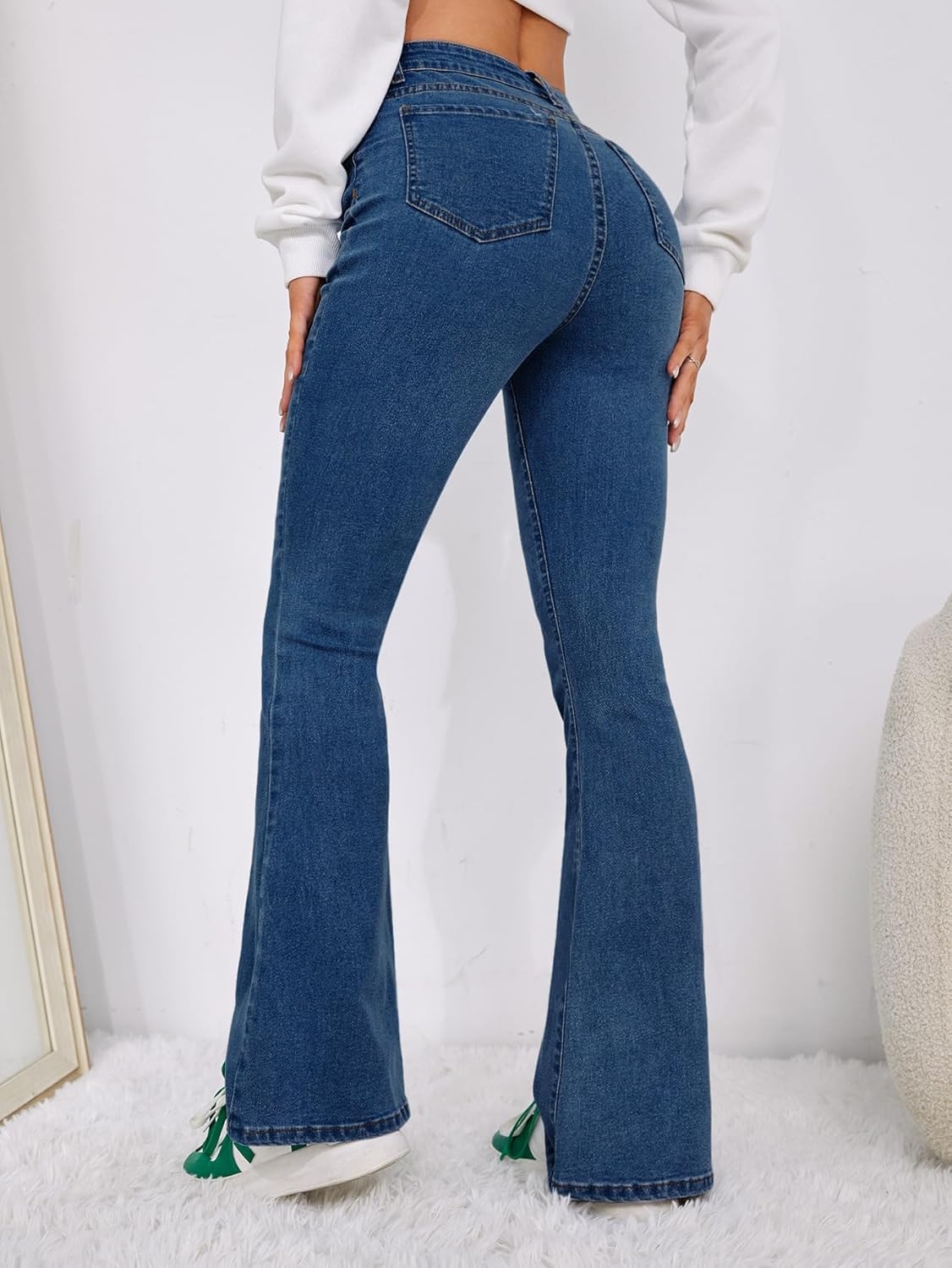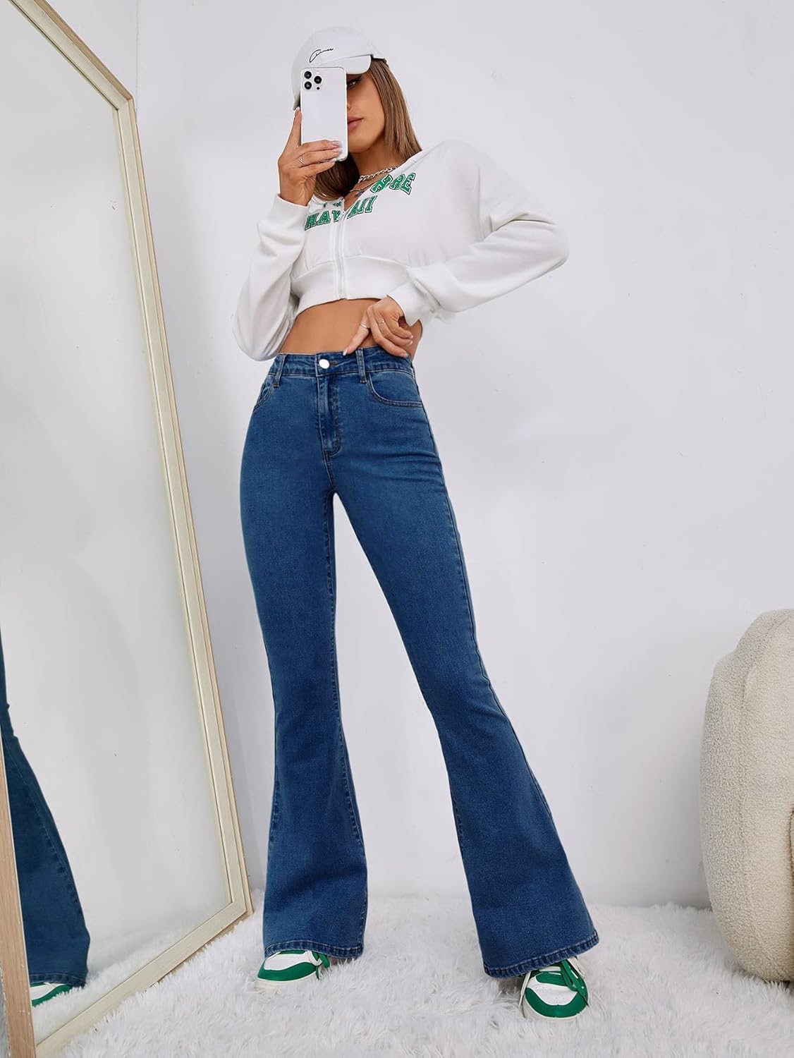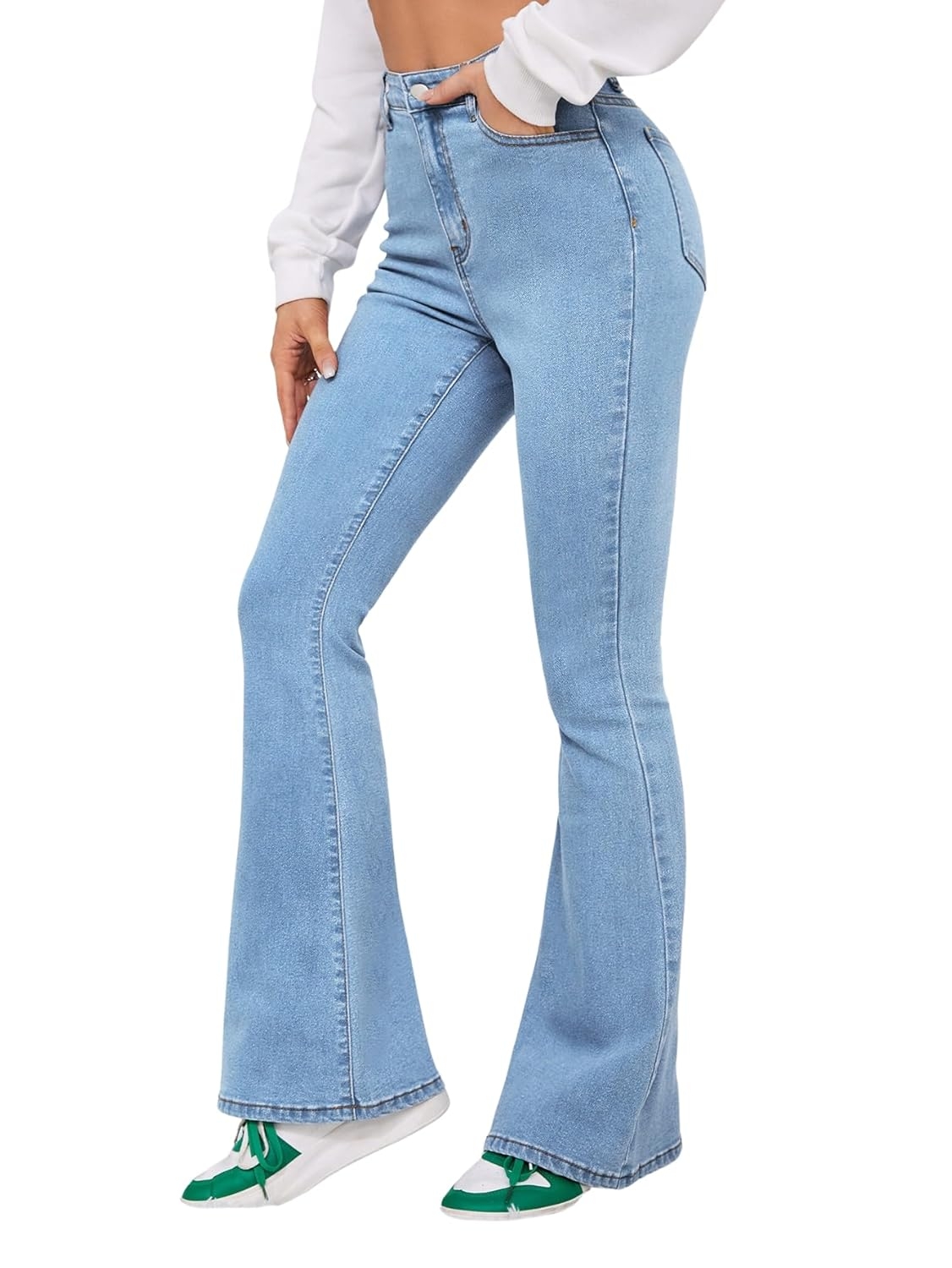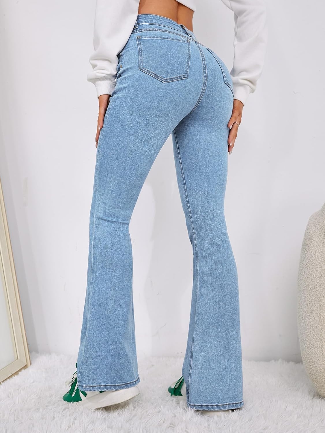Features: High Waisted, Button And Zipper Fly, Flare Leg, Solid Color, Full Length, Breathable And Soft Fabric.easy To Pair With Tank Top, Tee Shirt, Sweater, Sweatshirt, Jacket, Sandals, Sneakers, Casual Shoes And So On.ideal For Casual Daily, Hanging Out, Weekend, Shopping, Going Out, School, Weekday, Trip And Other Occasions.